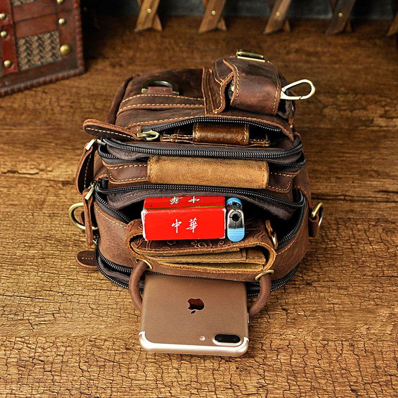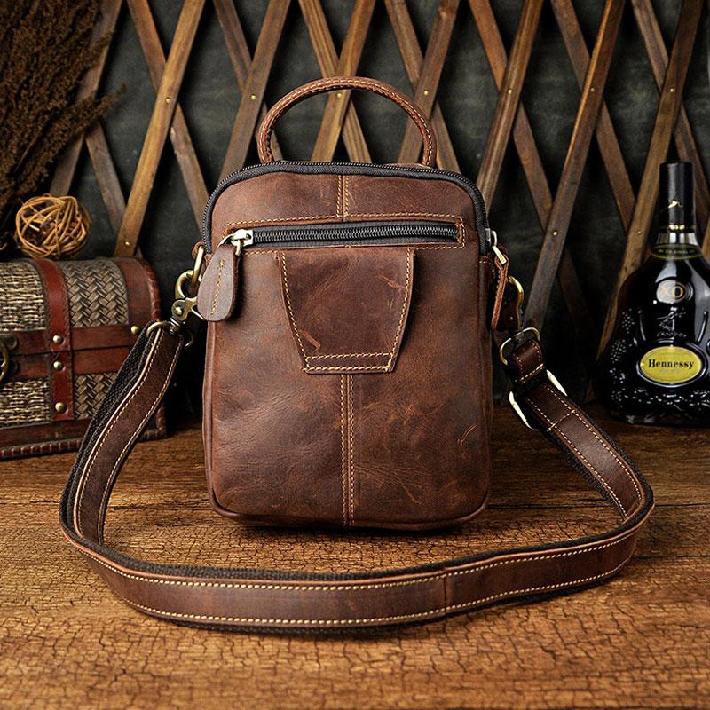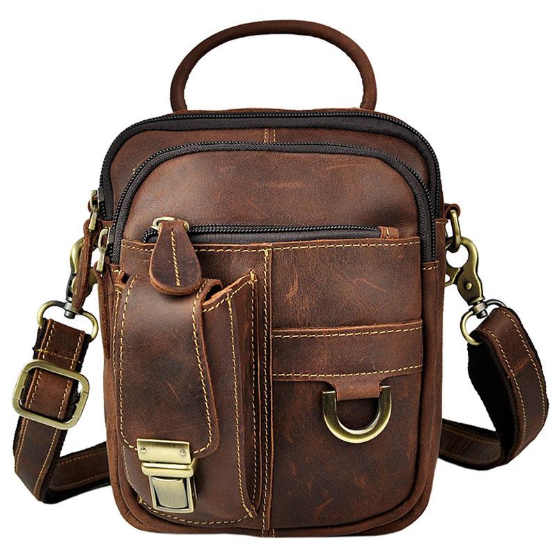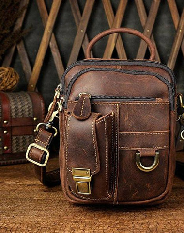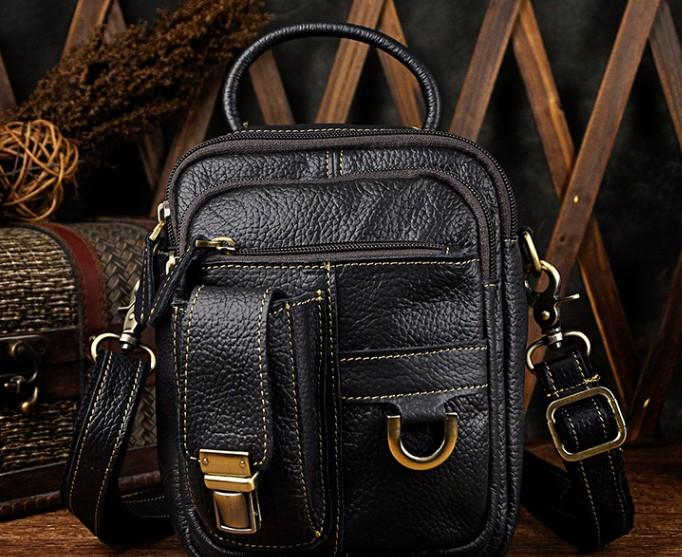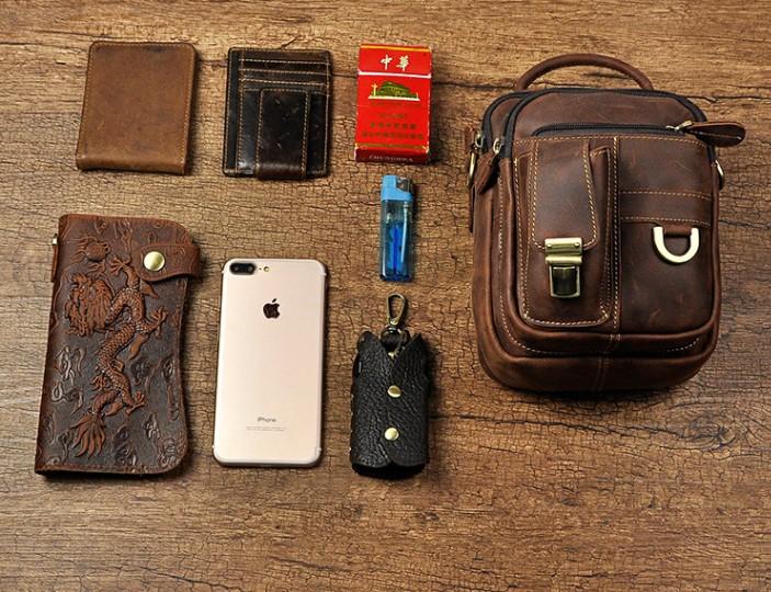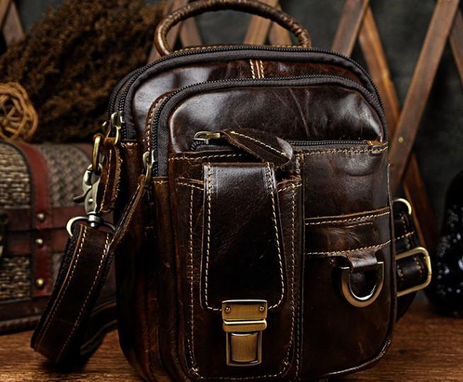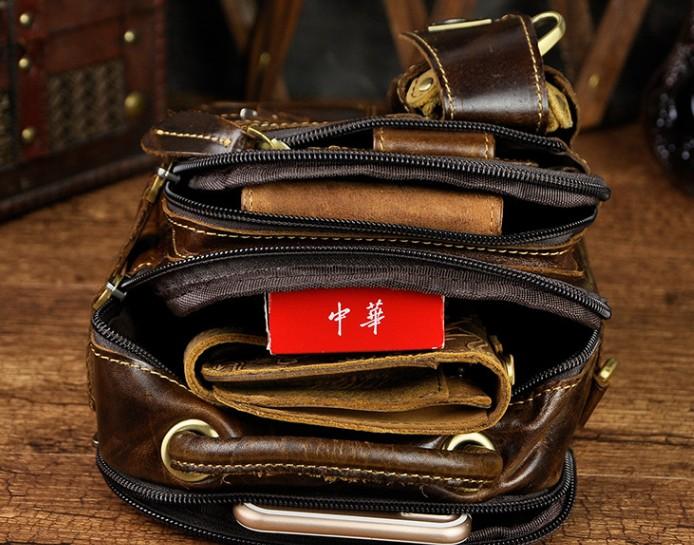 Style: Mens Leather Small Side Bag COURIER BAG Waist Bag Holster Belt Case Belt Bag for Men
