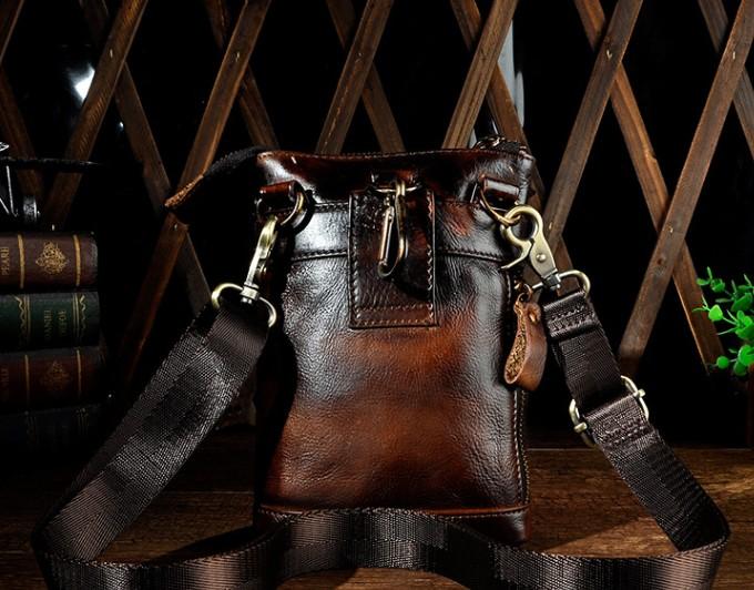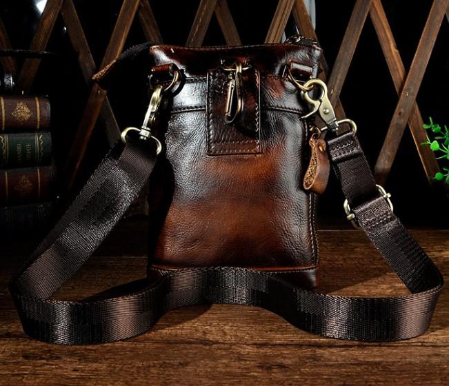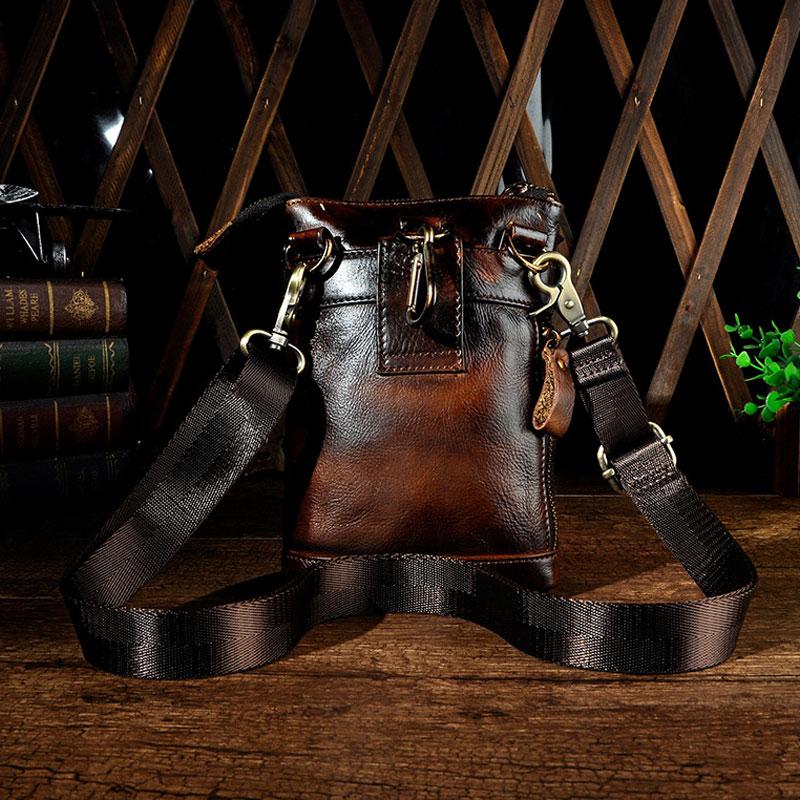 Style: Mens Leather Small Side Bag Waist Pouch Holster COURIER BAG Belt Case Belt Pouch for Men