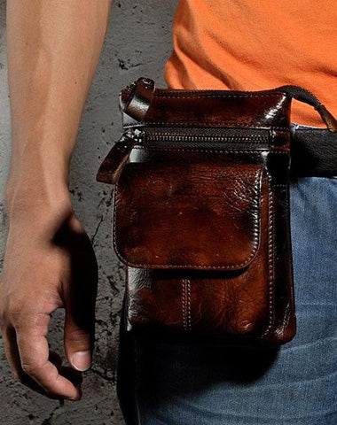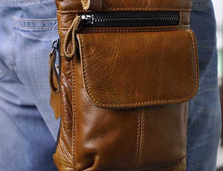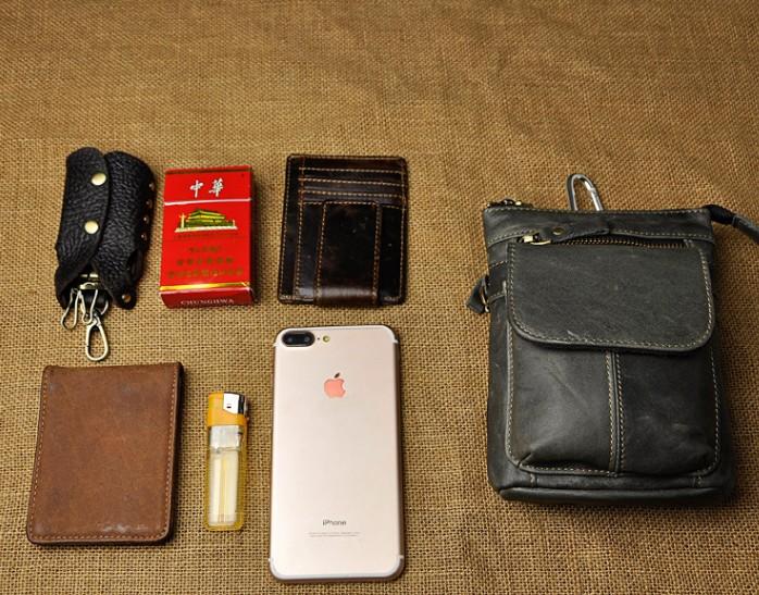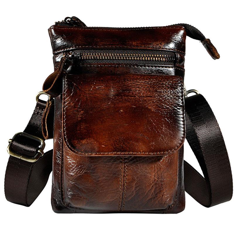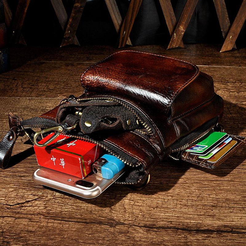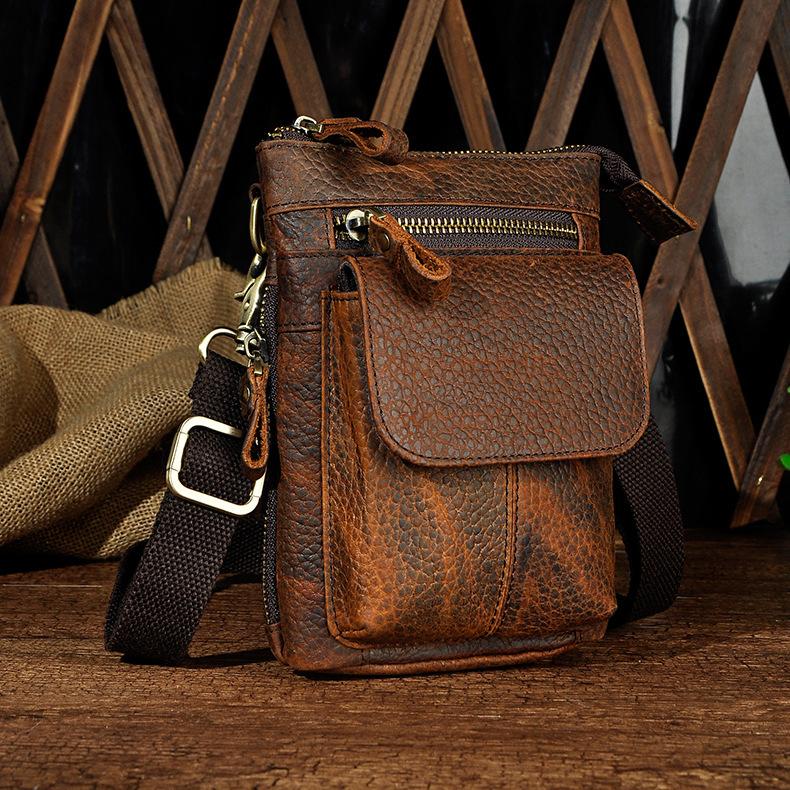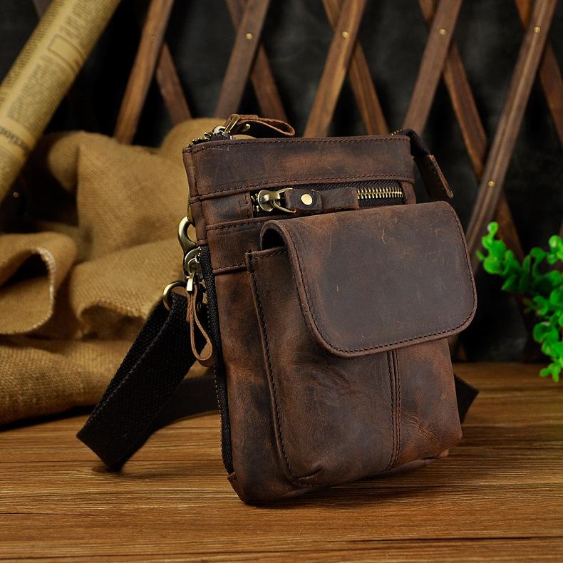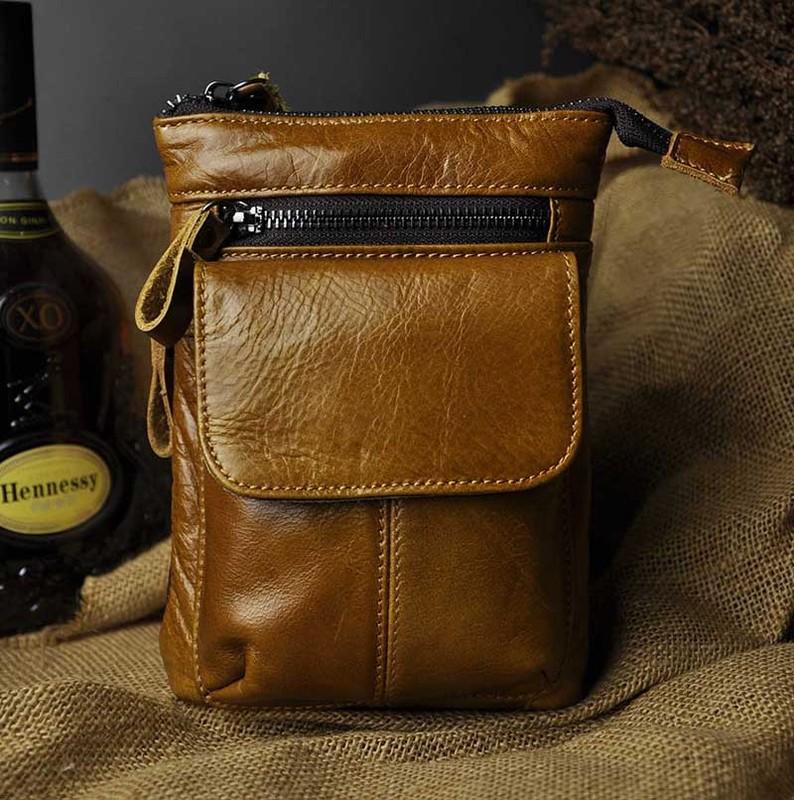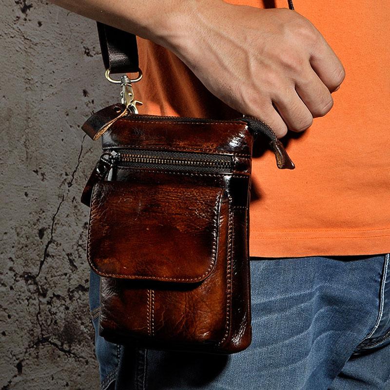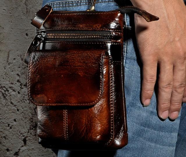 Design: Mens Leather Small Side Bag Waist Pouch Holster COURIER BAG Belt Case Belt Pouch for Men