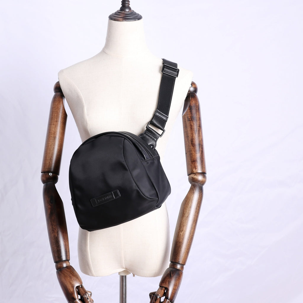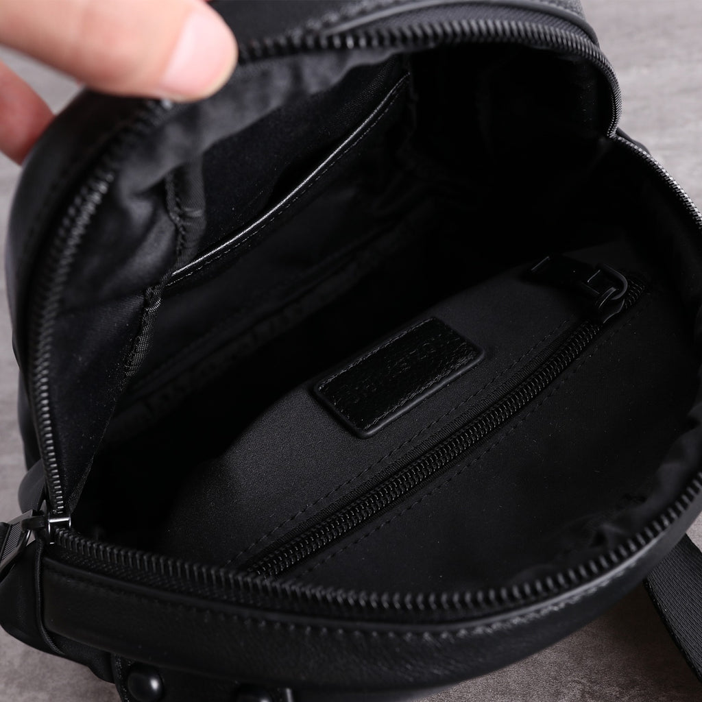 Design: Mens Nylon Leather Crossbody Bag Womens Black Nylon Chest Purse Nylon Sling Bag for Ladies