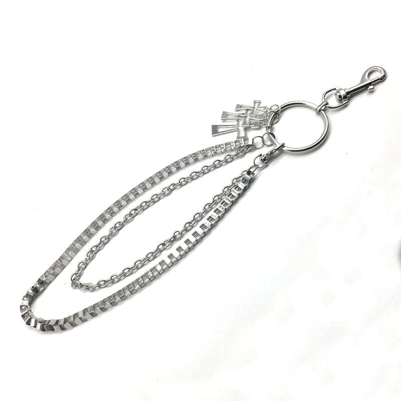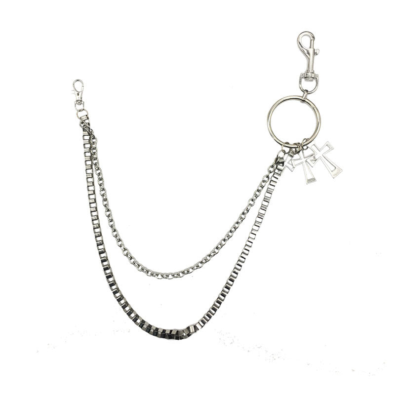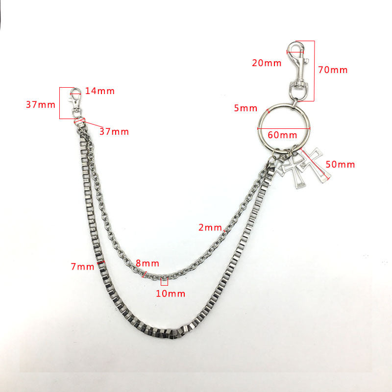 Design: Mens Silver Double Layers Pants Chains With Cross Silver Cool Double Biker Wallet Chain For Men