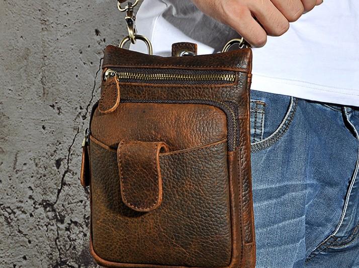Design: Small Mens Leather Side Bag Belt Pouch Holster Belt Case Waist Pouch for Men