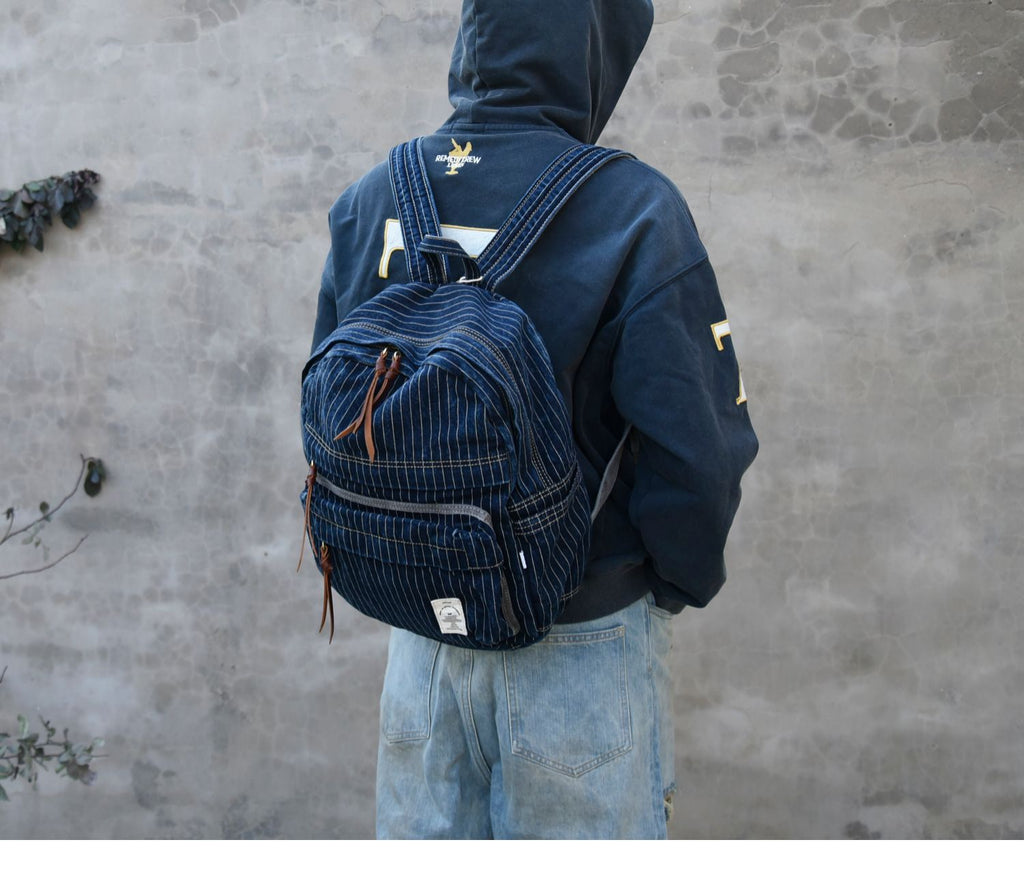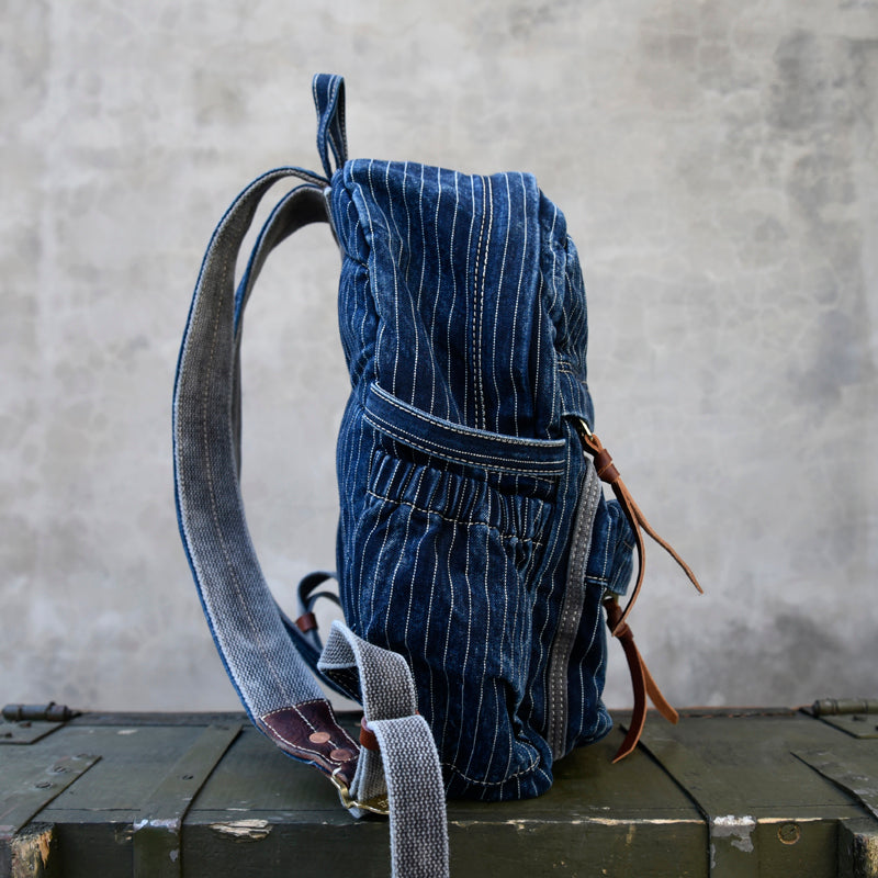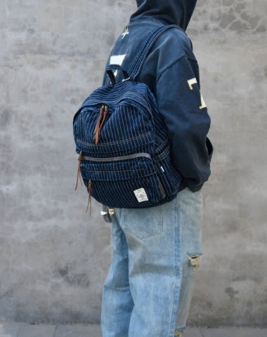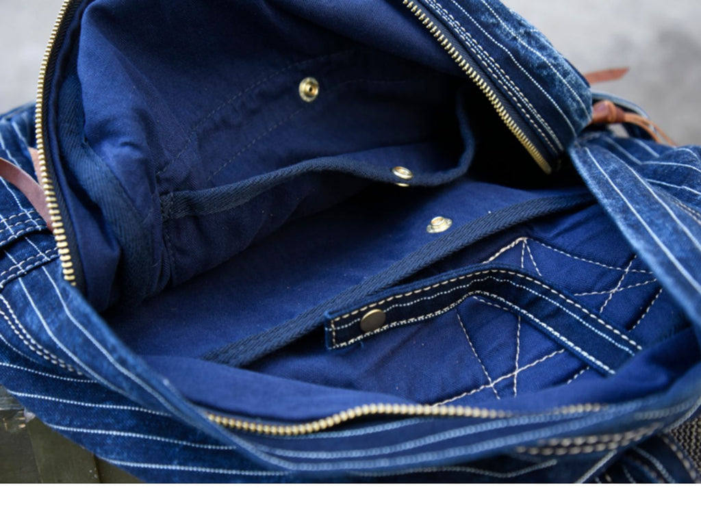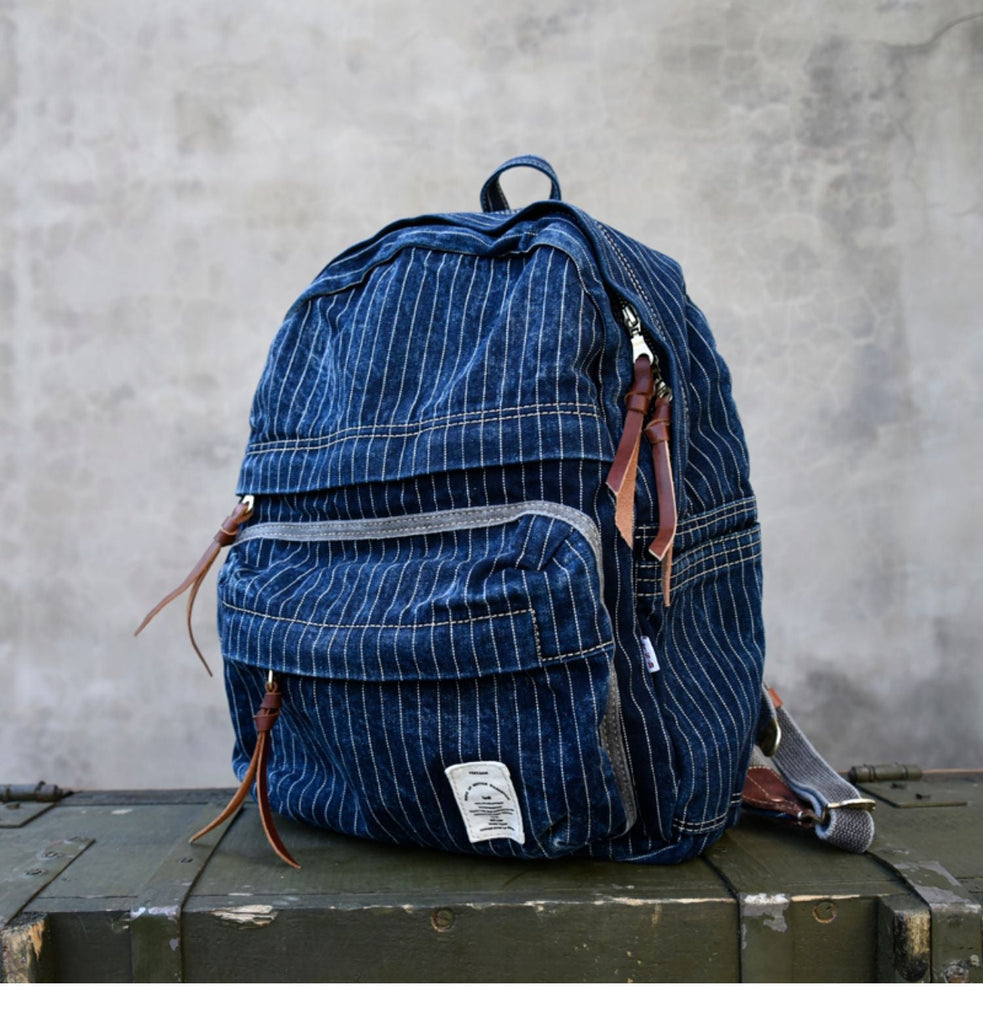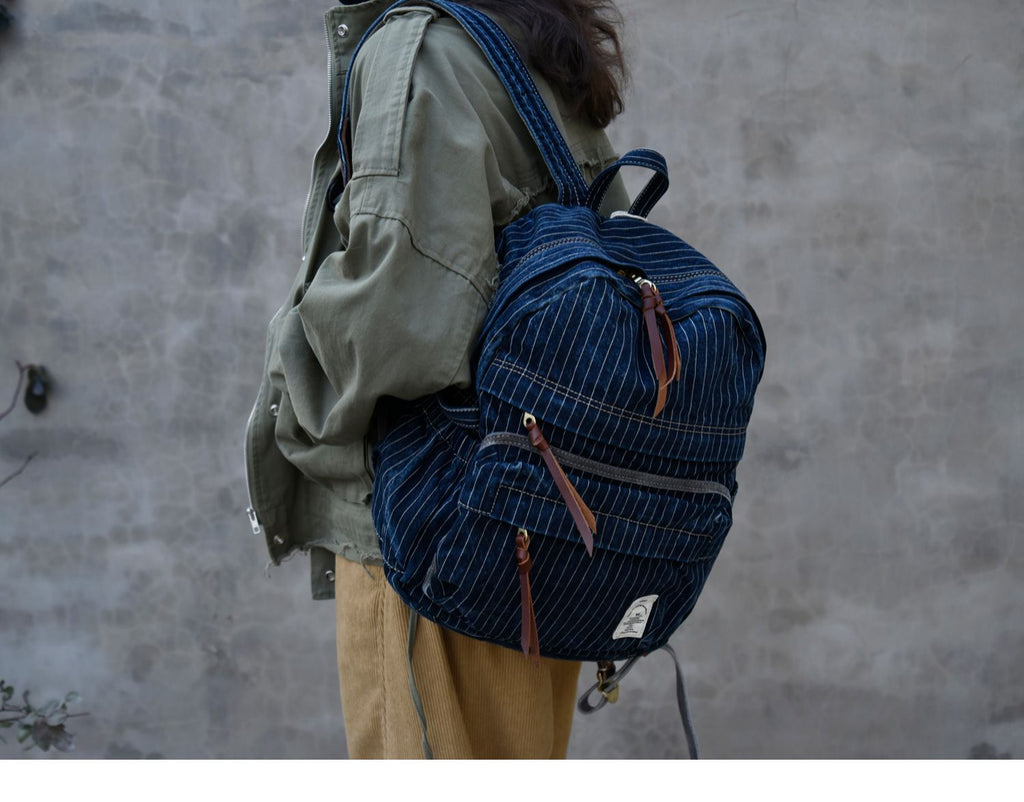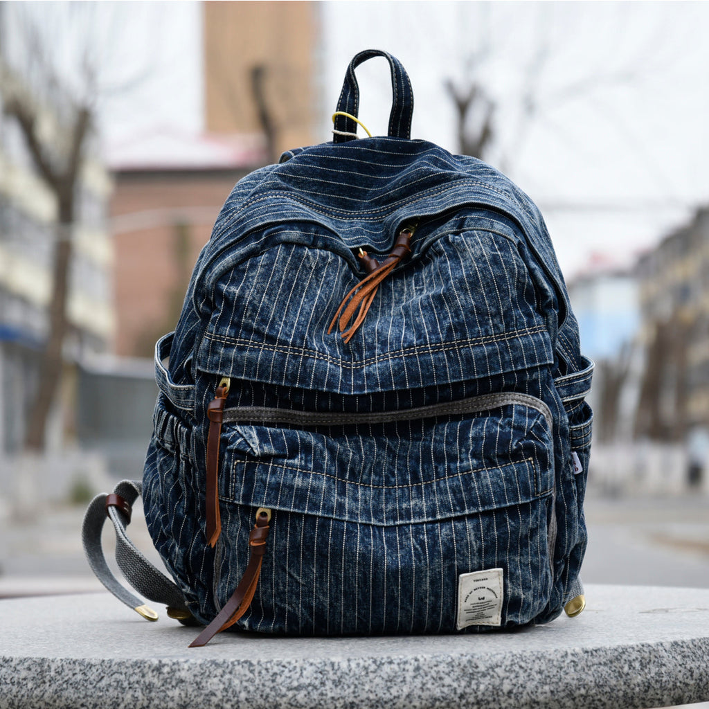 Style: Blue Denim Backpack for Women Striped Jean Backpack Mens Striped Backpack