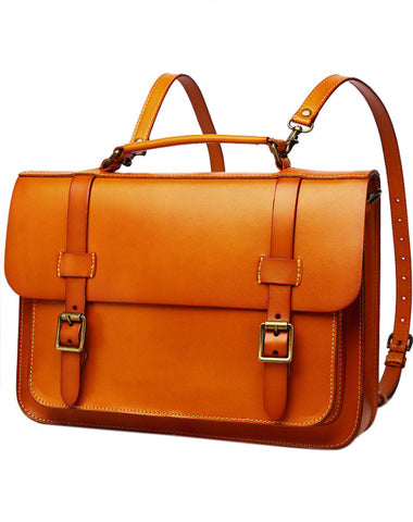 Men's Tan Leather Convertible Messenger Bag Backpack Stachel Bag For Men