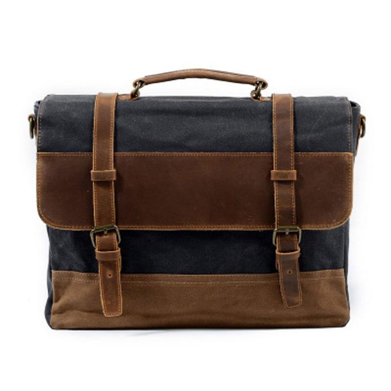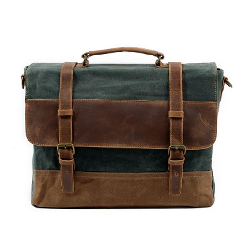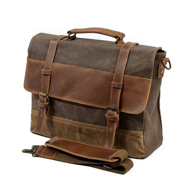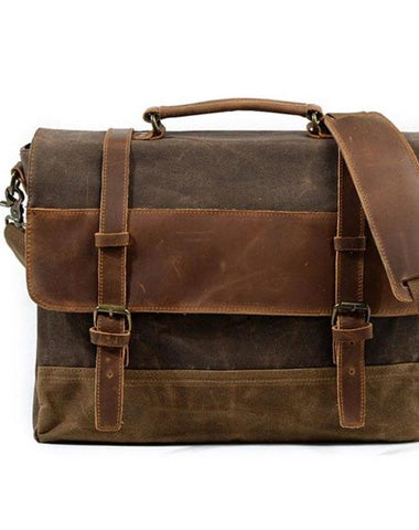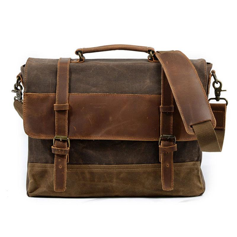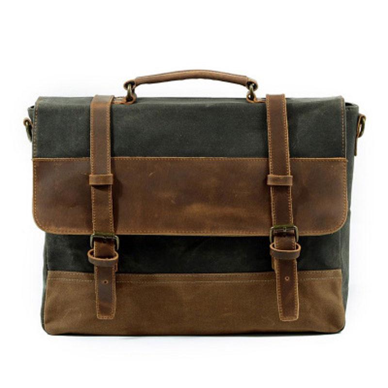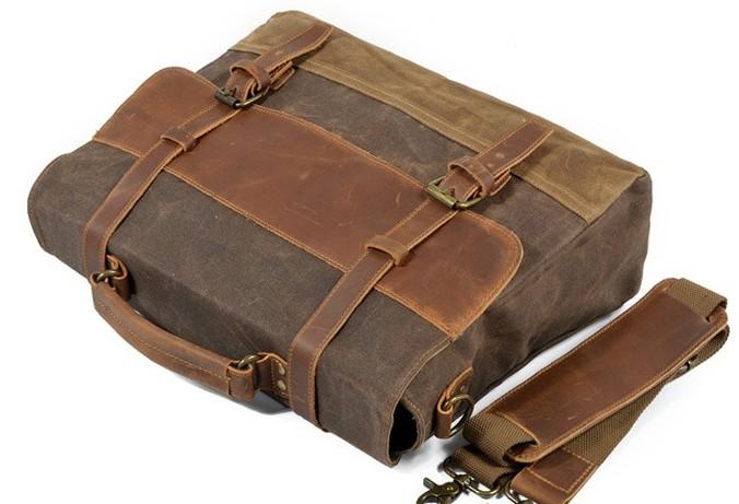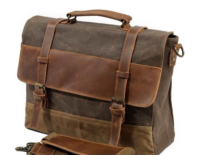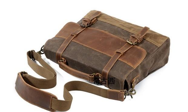 Style: Mens Waxed Canvas Leather Side Bag Messenger Bag Canvas Courier Bag for Men