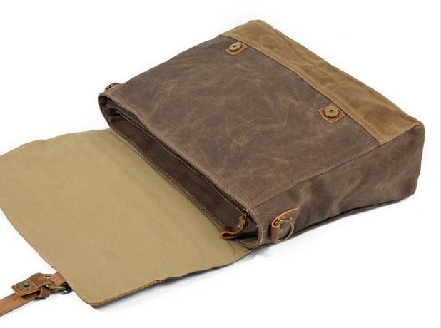 Design: Mens Waxed Canvas Leather Side Bag Messenger Bag Canvas Courier Bag for Men