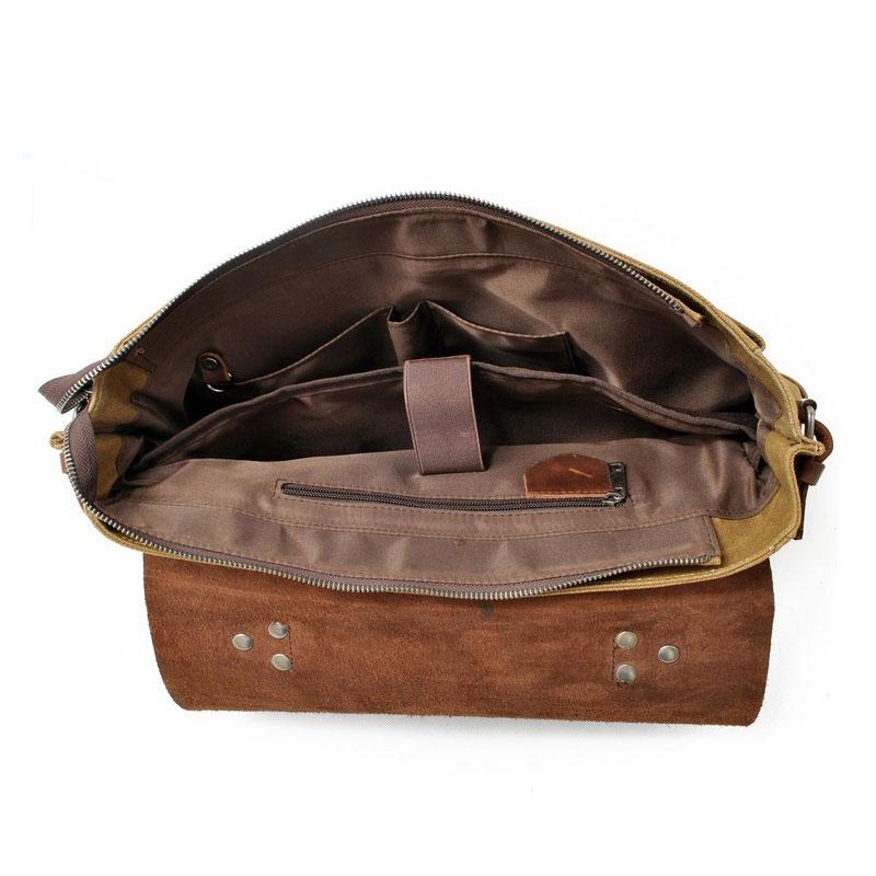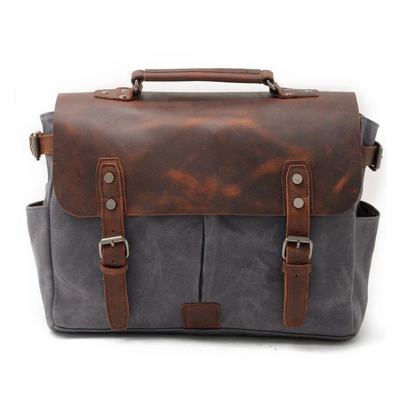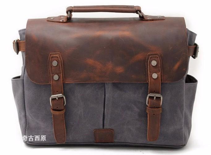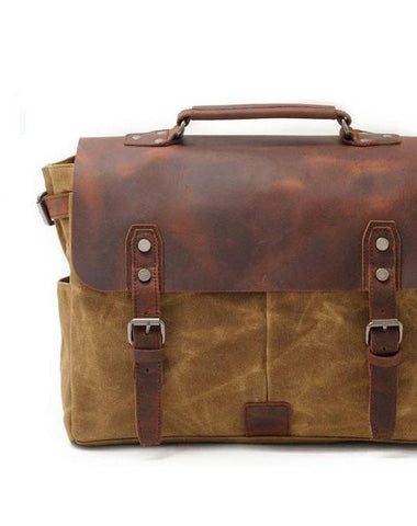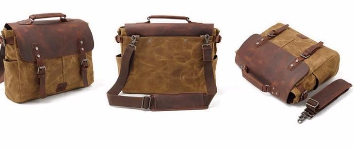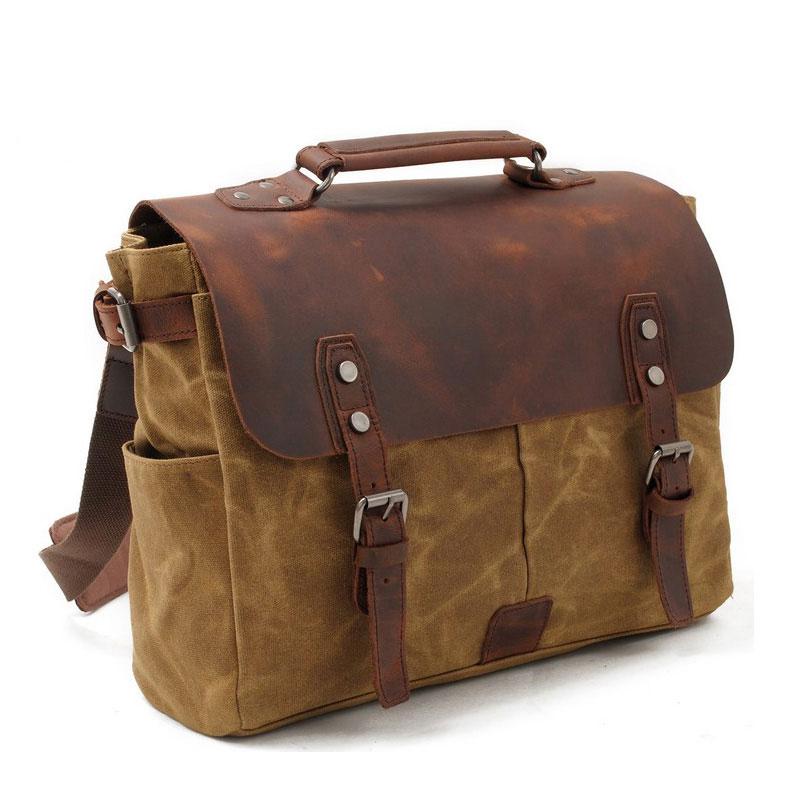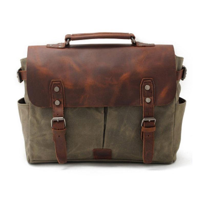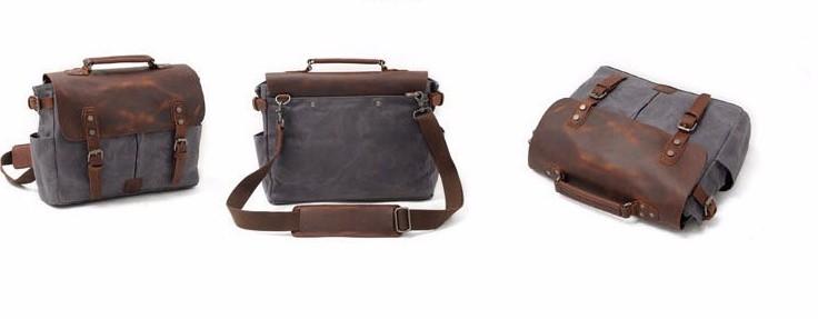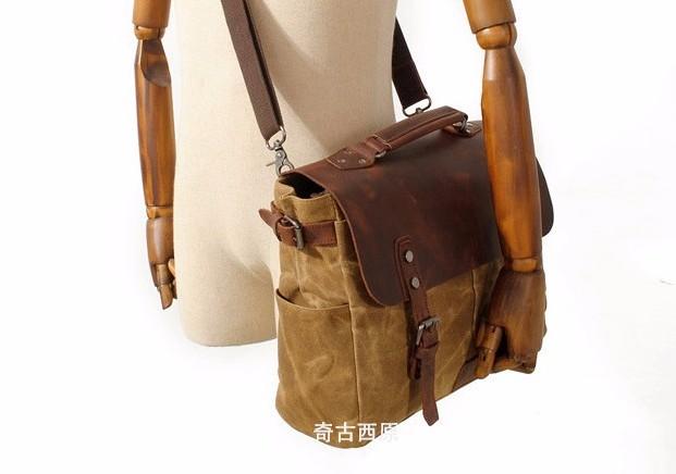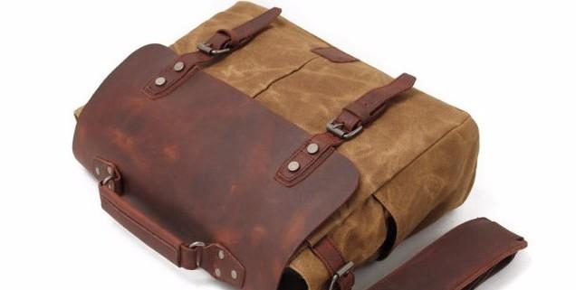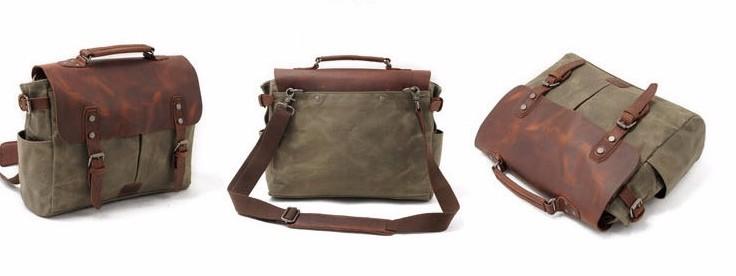Style: Mens Waxed Canvas Leather Side Bag Messenger Bag Canvas Courier Bag for Men