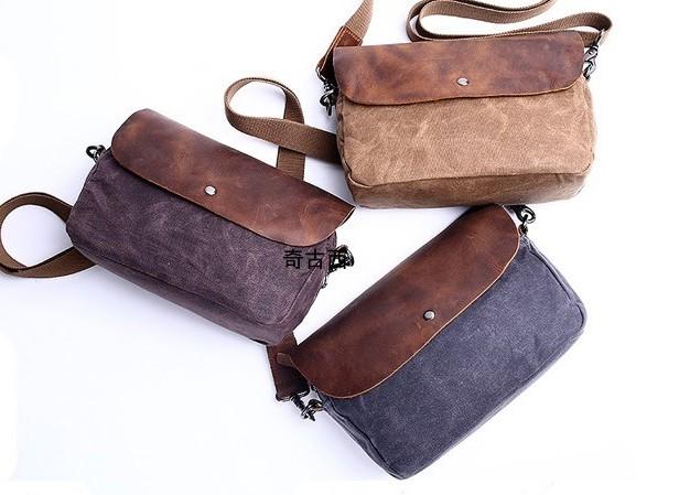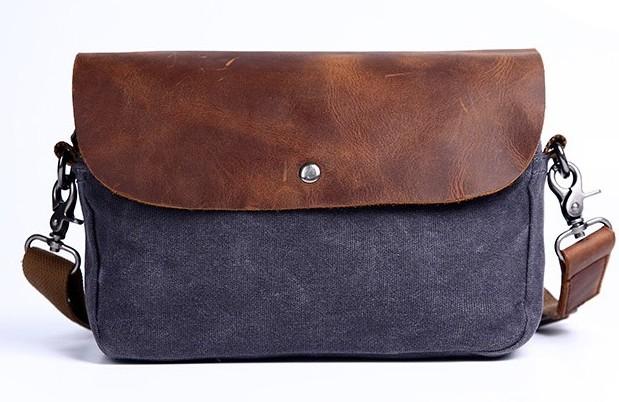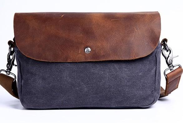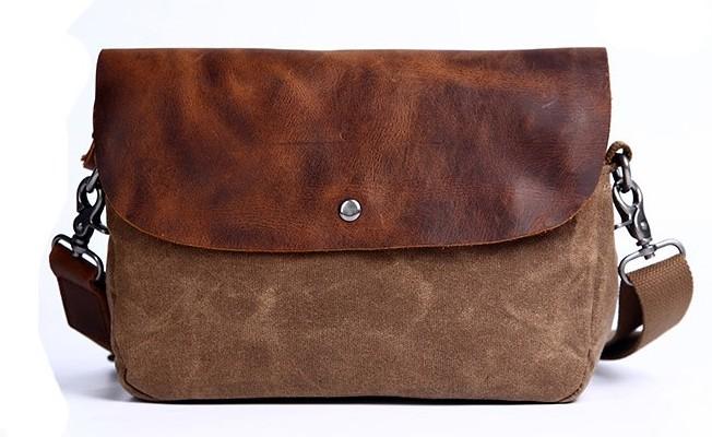 Style: Mens Waxed Canvas Leather Small Side Bag Canvas Courier Bags for Men