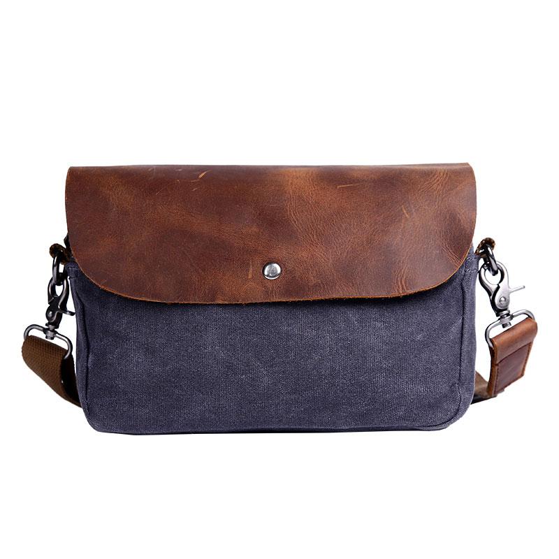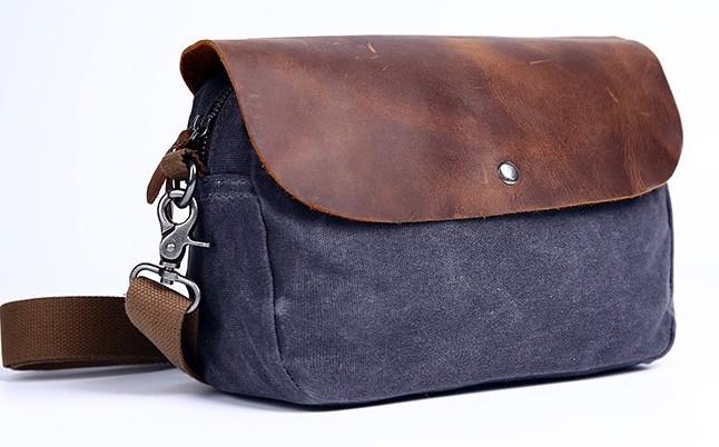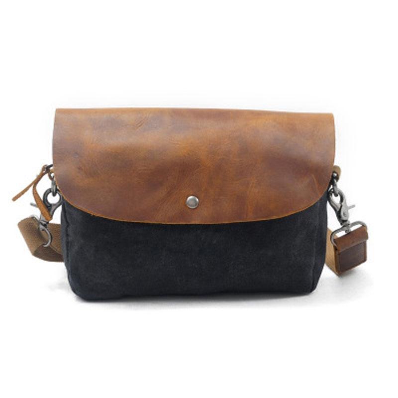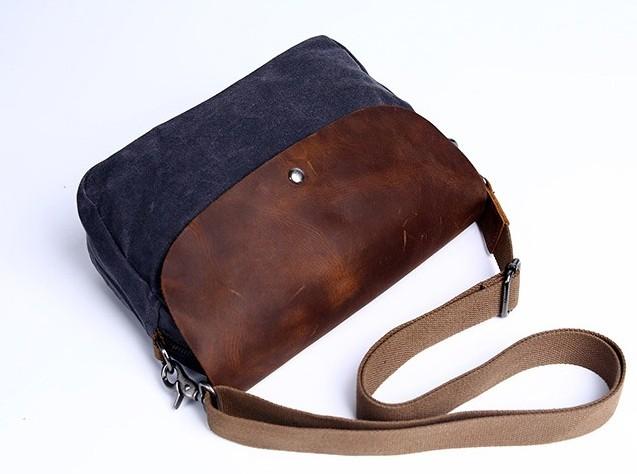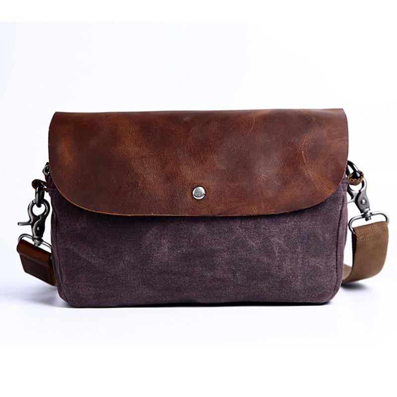 Design: Mens Waxed Canvas Leather Small Side Bag Canvas Courier Bags for Men