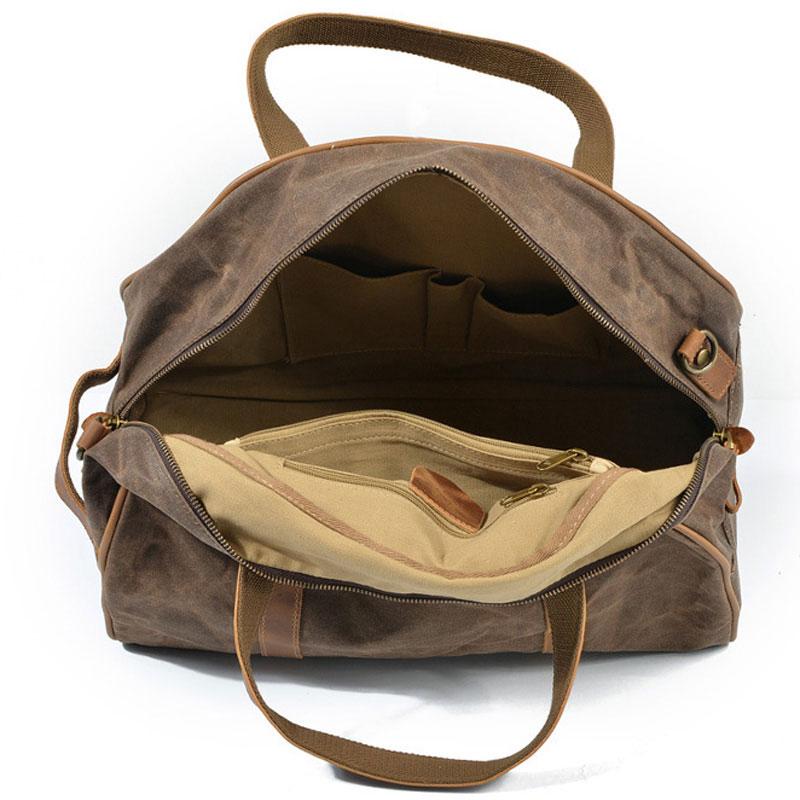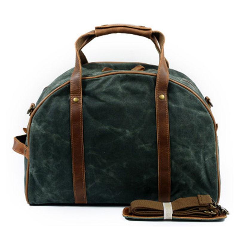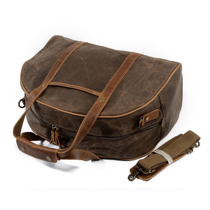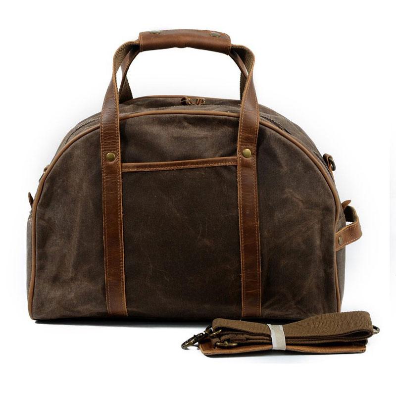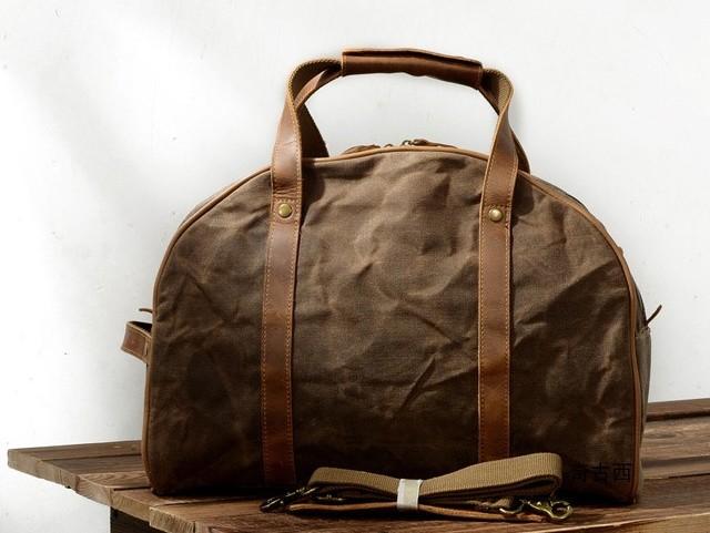 Design: Mens Waxed Canvas Leather Small Weekender Bag Canvas Handbag Travel Bag for Men