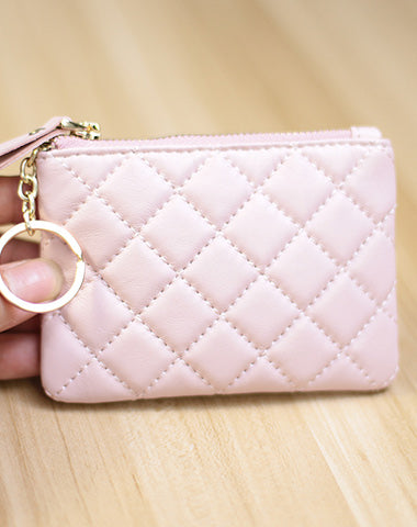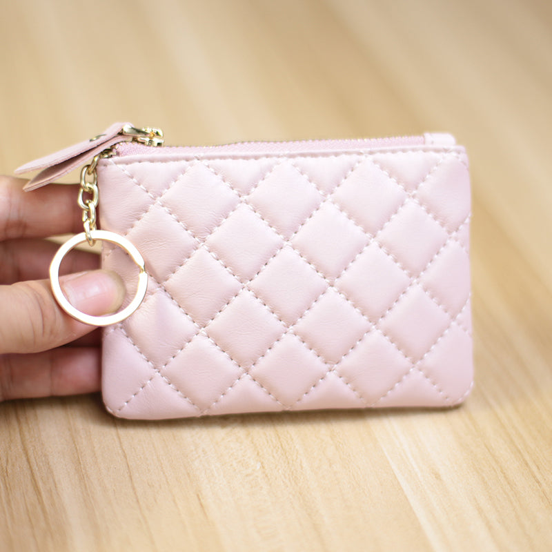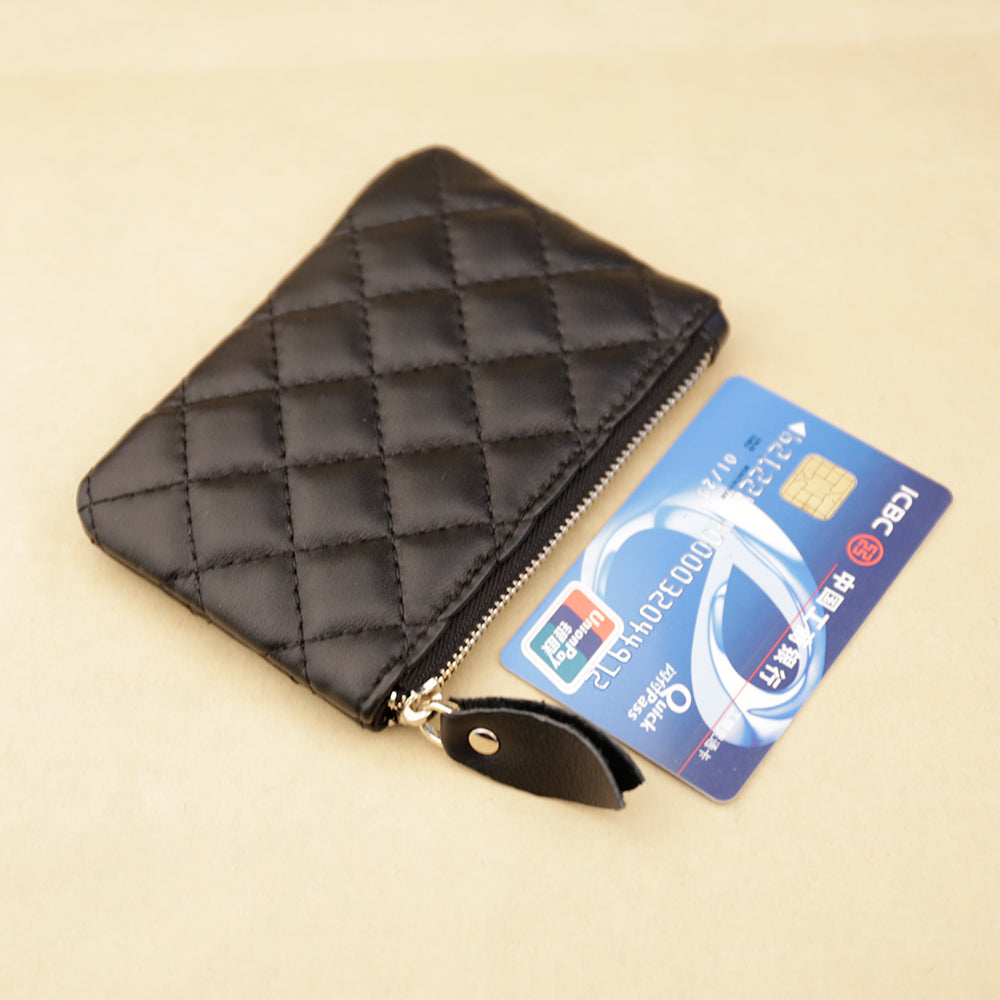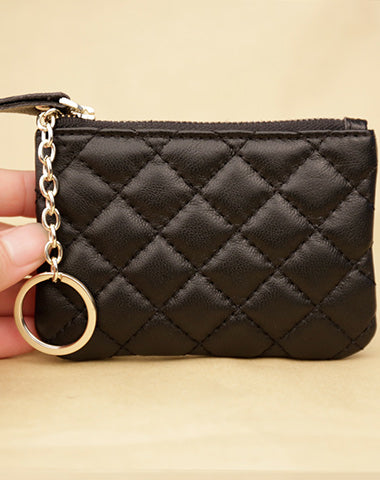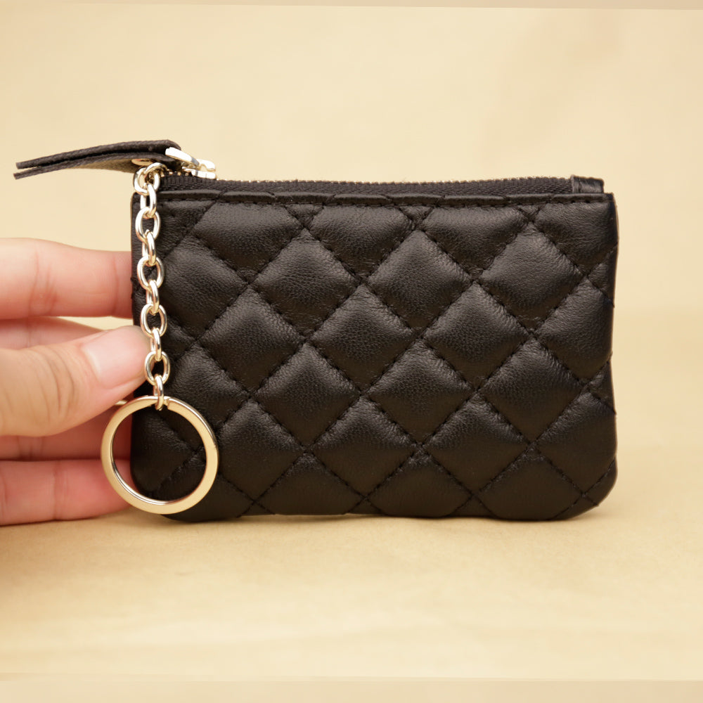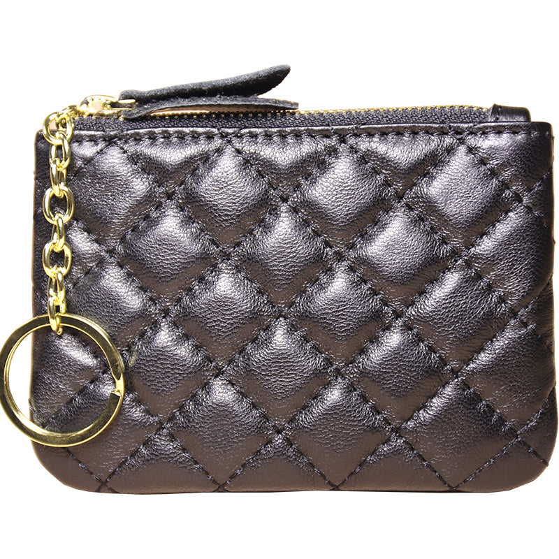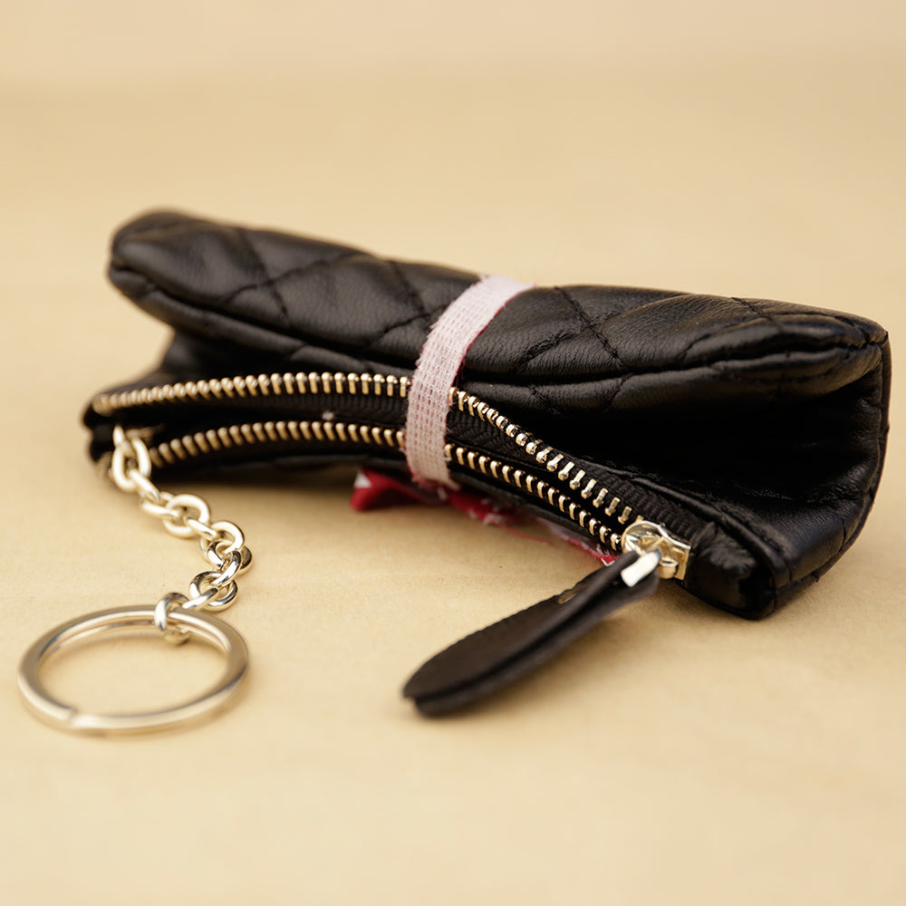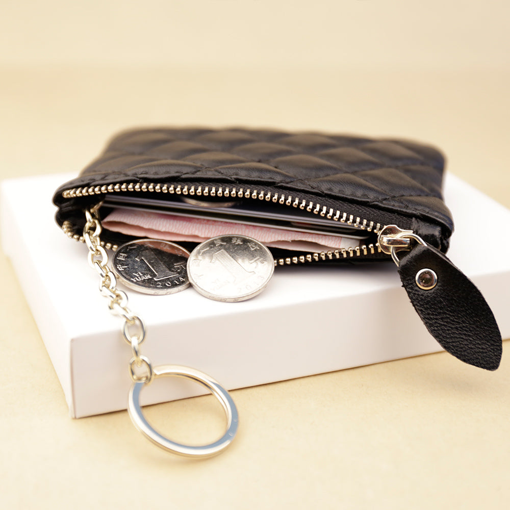 Design: Mini Women Black Leather Zip Coin Wallet with Keychains Keys Wallet Small Zip Change Wallet For Women