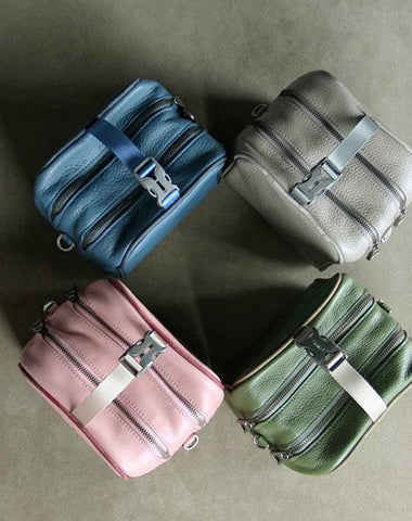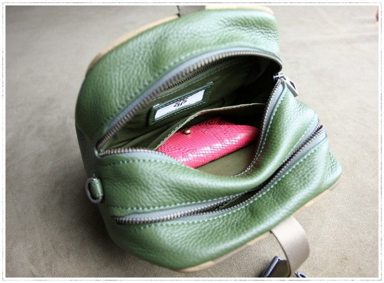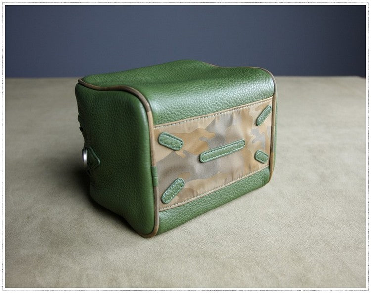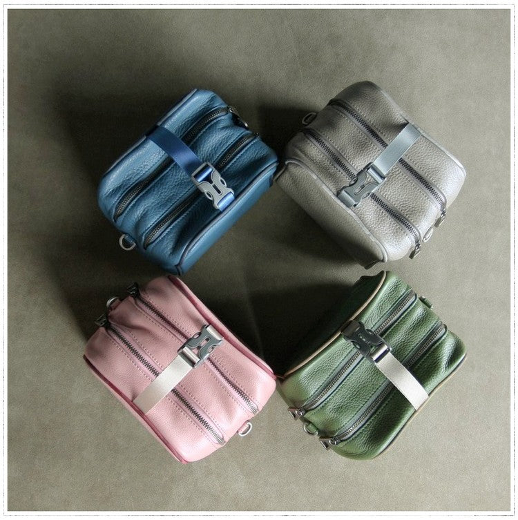 Mini Womens Khaki Leather Shoulder Purse Cube Double Zip Leather Crossbody Purse for Ladies