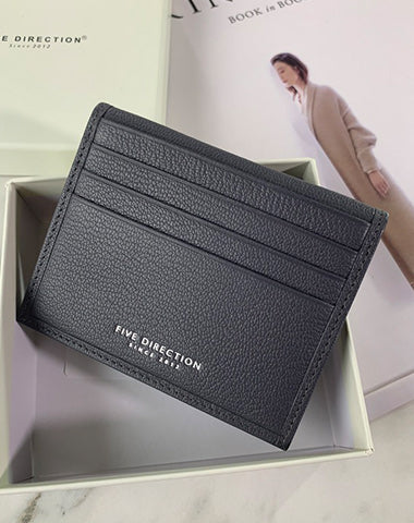 Minimalist Women Dark Blue Leather Slim Card Holders Small Card Wallet Cute Card Holder Credit Card Holder For Women