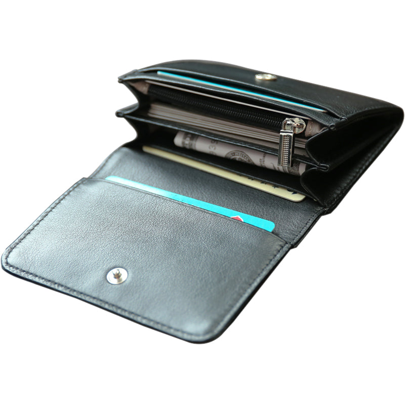 Slots: 2 main slots, 2 card holders, 1 zip pocket