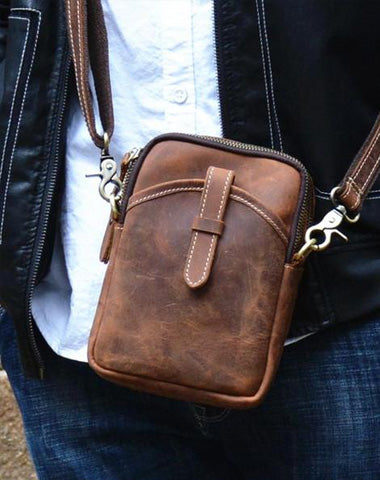Style: Vintage Brown Leather Men's Cell Phone Holsters Brown Belt Pouch Mini Side Bag For Men