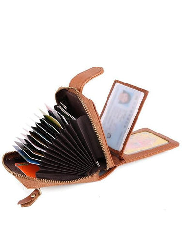 Style: RFID Brown Leather Men's Zipper Small Card Wallet Small Card Holder For Men