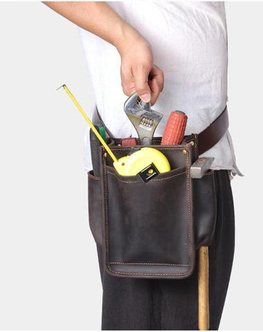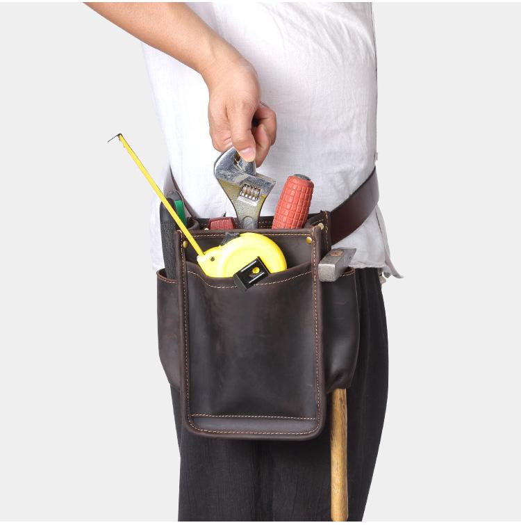 Design: Cool Men's Leather Tool Pouch electrician tool bag Belt Pouch For Men