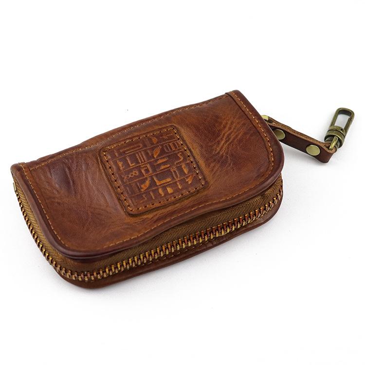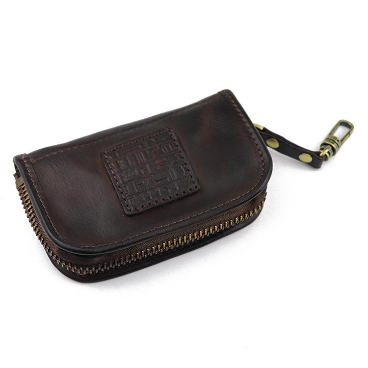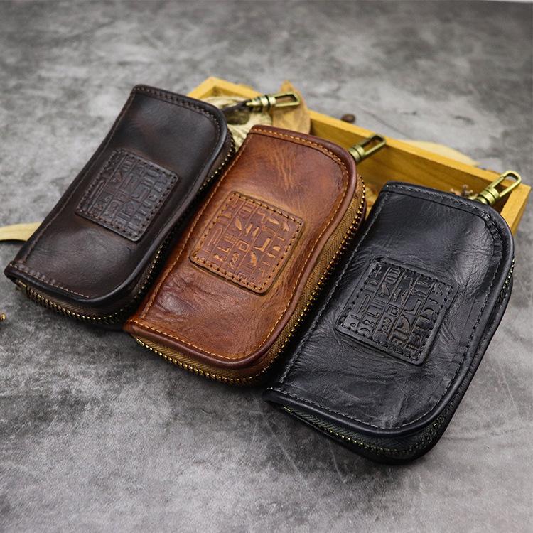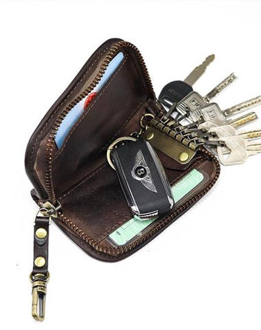 Style: Vintage Brown Leather Men's Car Key Wallet Black Key Zipper Wallet For Men