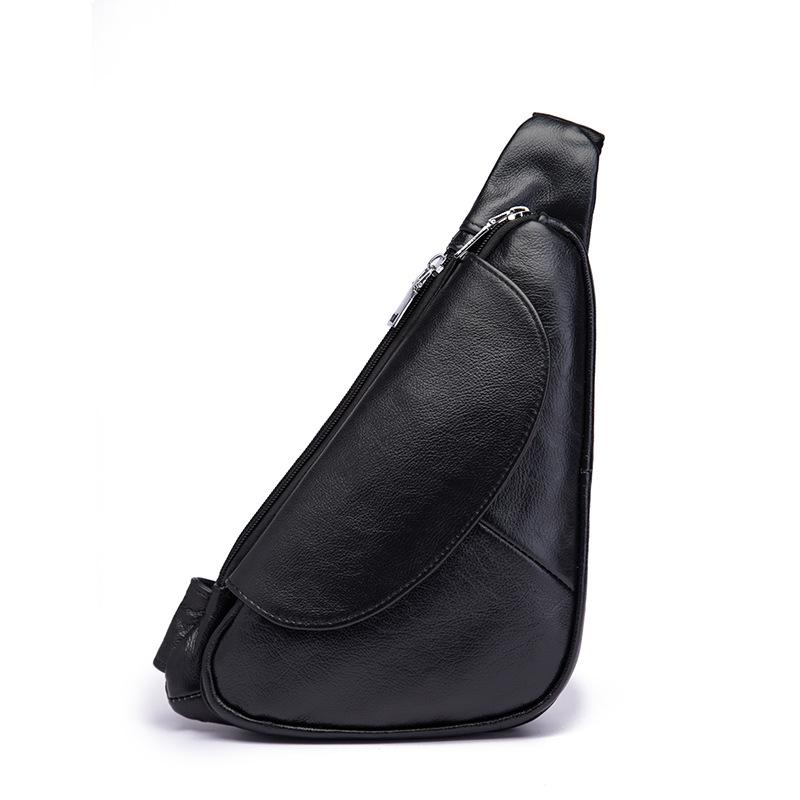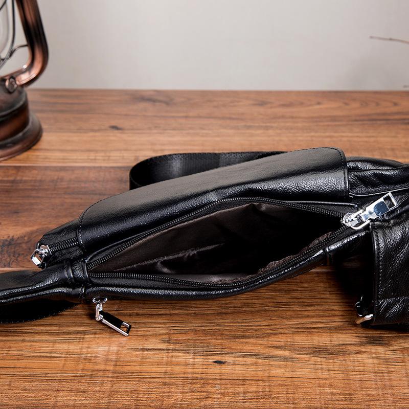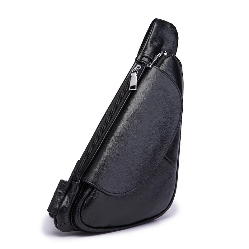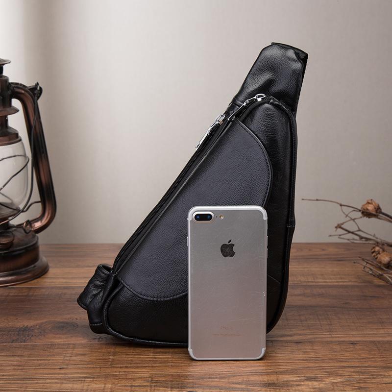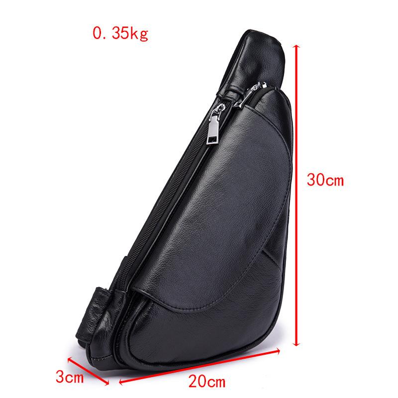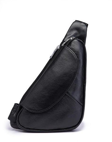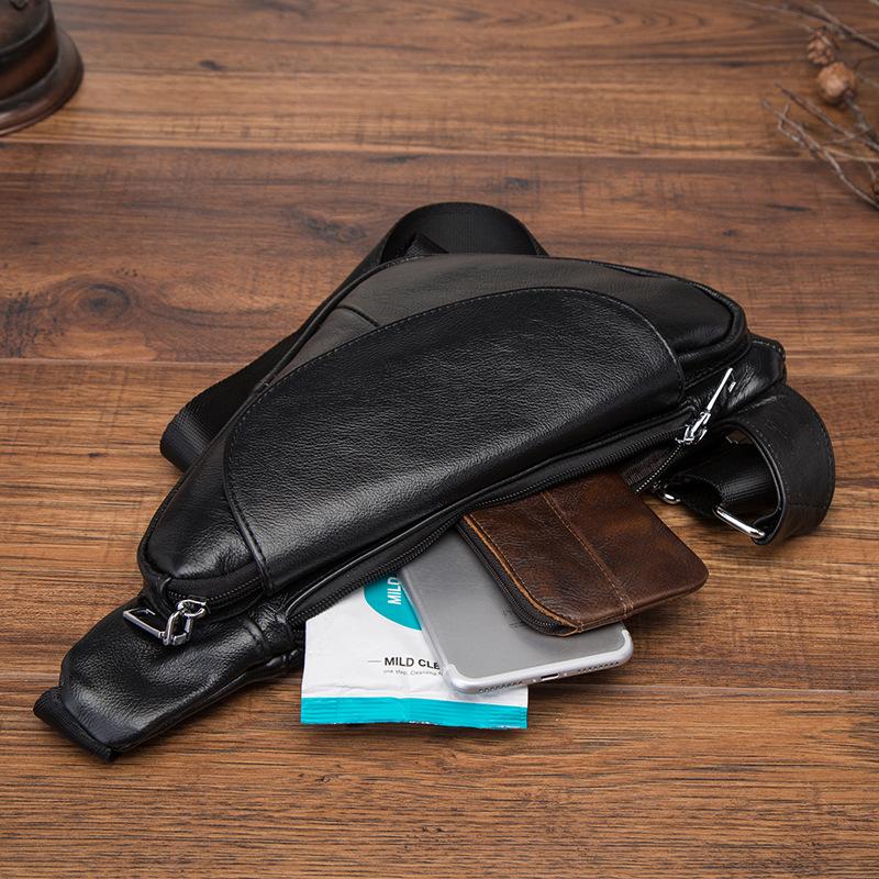 Design: Cool Black Leather Mens Sling Bag Chest Bag One-Shoulder Backpack For Men