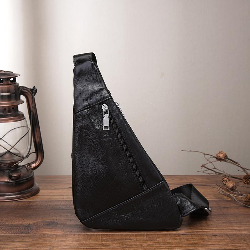 Style: Cool Black Leather Mens Sling Bag Chest Bag One-Shoulder Backpack For Men