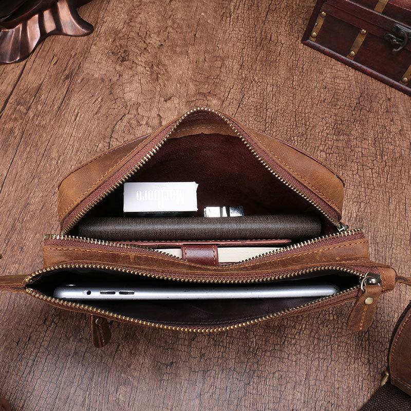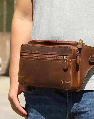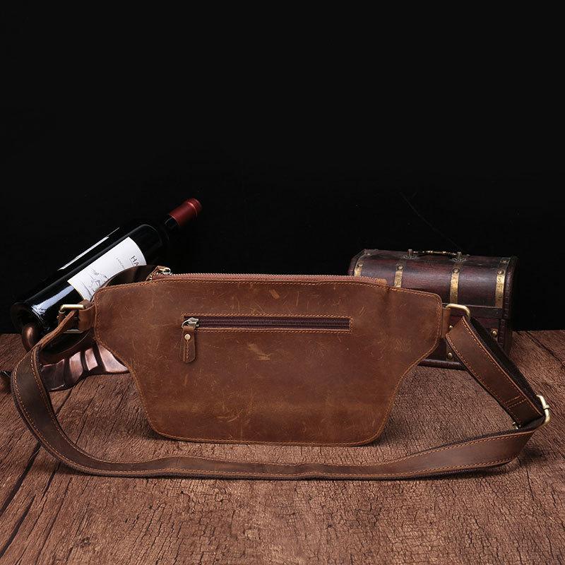 Design: Vintage Brown Leather Men's Fanny Pack Coffee Chest Bag Waist Bag For Men