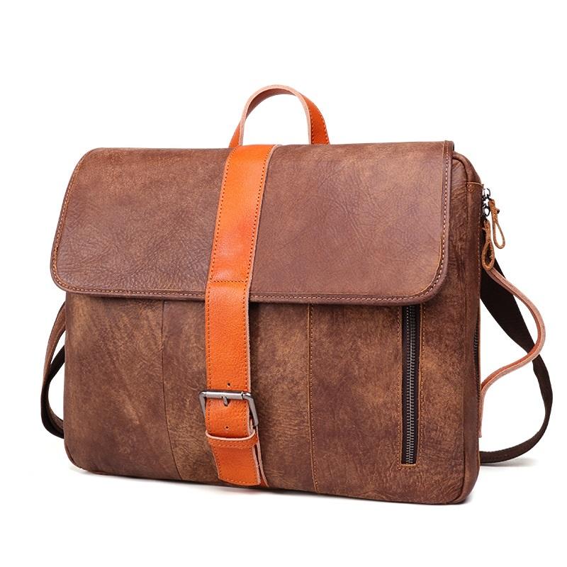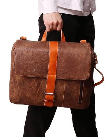 Design: Cool Brown Leather Men's Messenger Bag Handbag Backpack Briefcase For Men