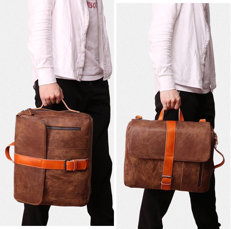 Style: Cool Brown Leather Men's Messenger Bag Handbag Backpack Briefcase For Men