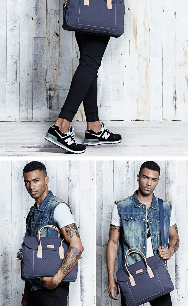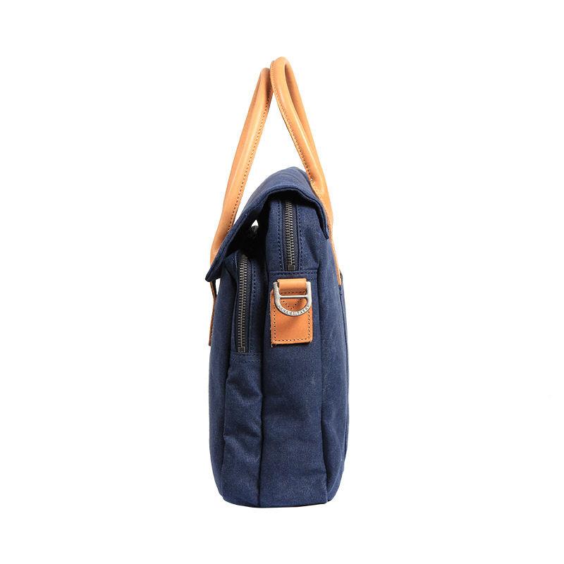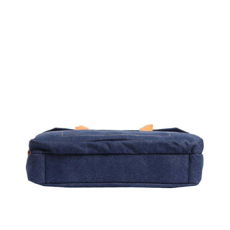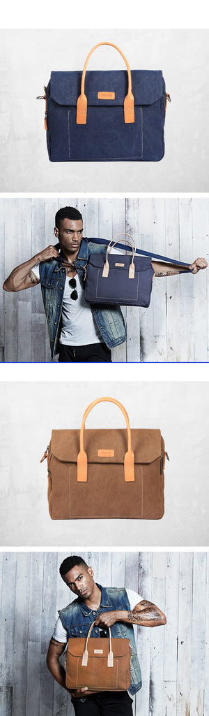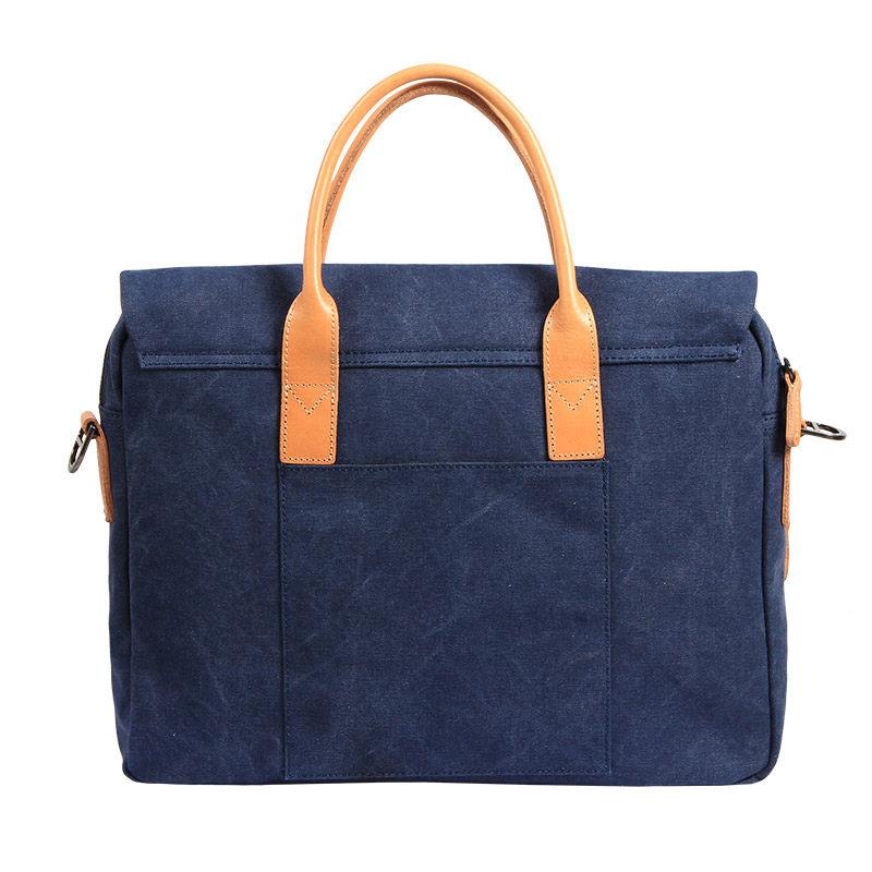 Design: Navy Blue Leather Waxed Canvas Mens Briefcase Messenger Bags Brown Casual Shoulder Bags for Men