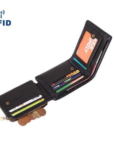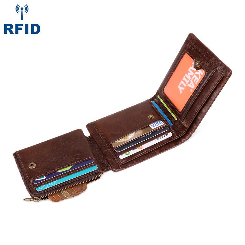 Style: Vintage Brown Trifold Leather Men's Small Wallet RFID Black billfold Wallet For Men