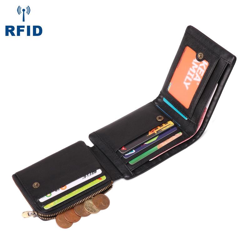 Design: Vintage Brown Trifold Leather Men's Small Wallet RFID Black billfold Wallet For Men