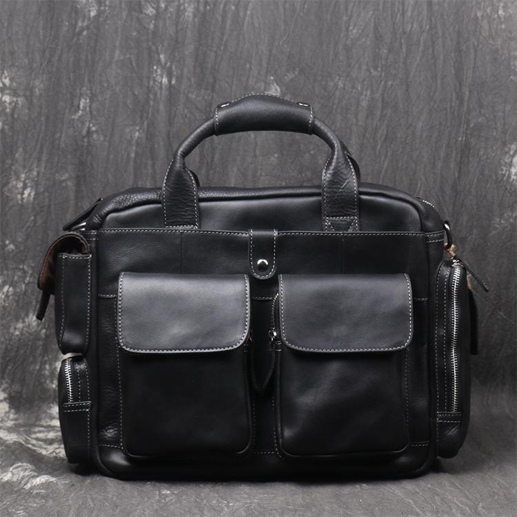 Black Oiled Leather Men's Professional Briefcase 13‘’ Laptop Handbag Business Bag For Men