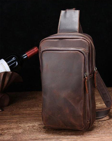 Style: Vintage Brown Leather Men's Sling Bags Chest Bag One Shoulder Backpack For Men