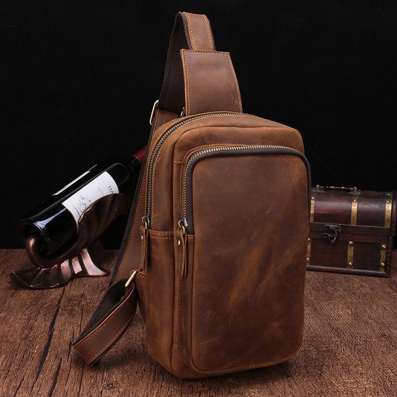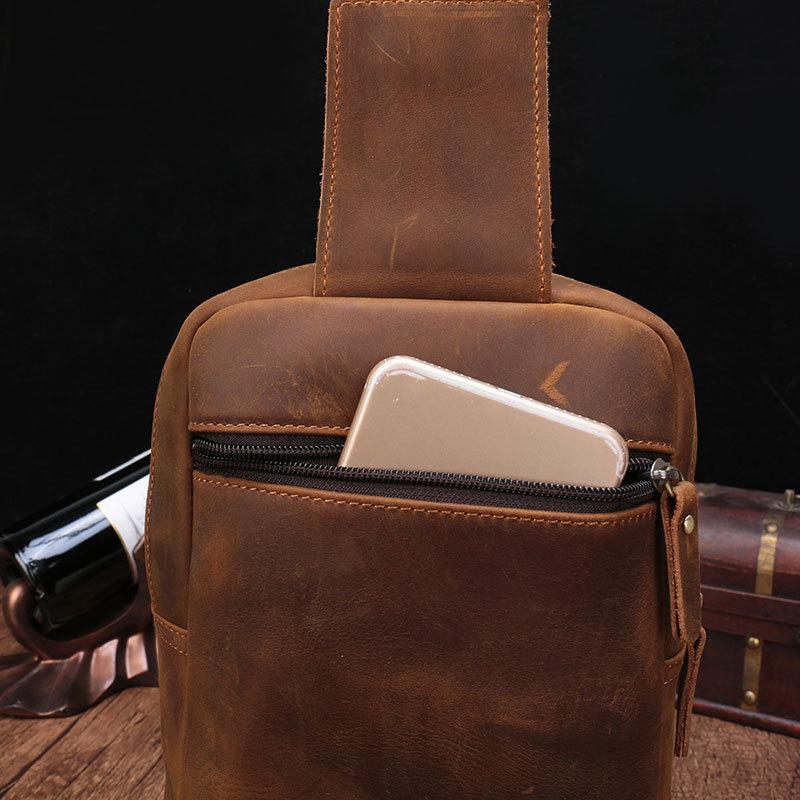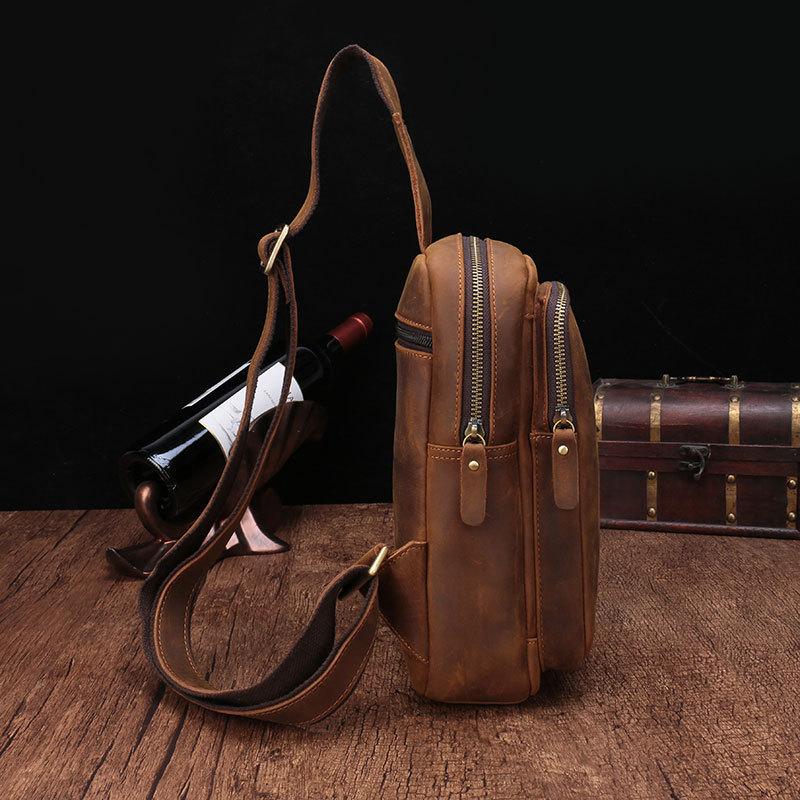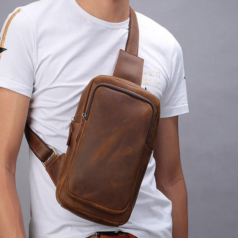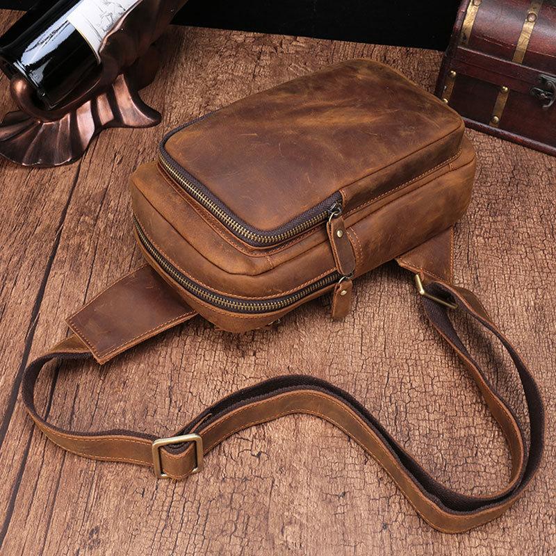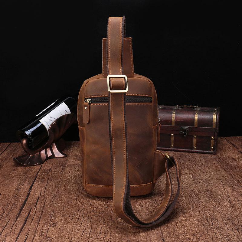 Design: Vintage Brown Leather Men's Sling Bags Chest Bag One Shoulder Backpack For Men