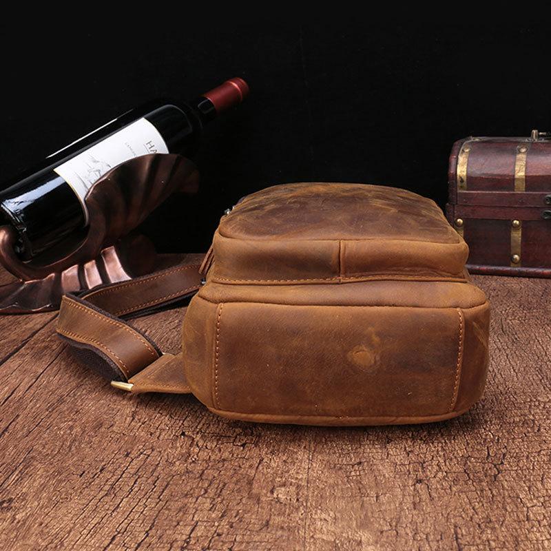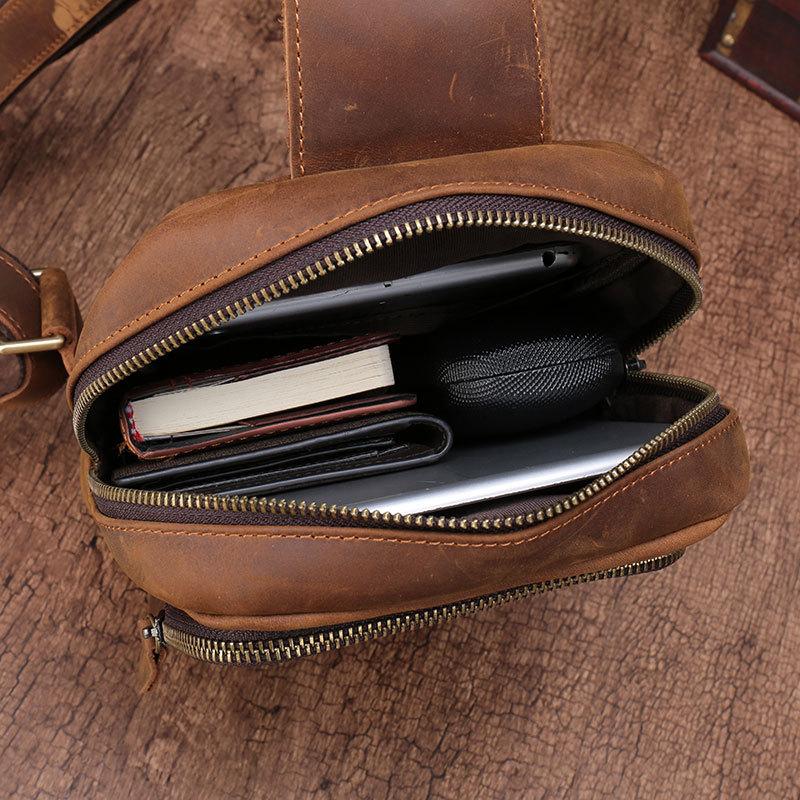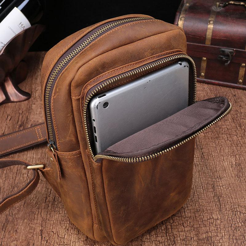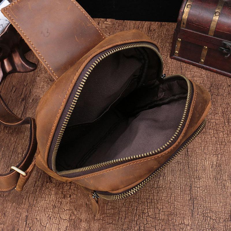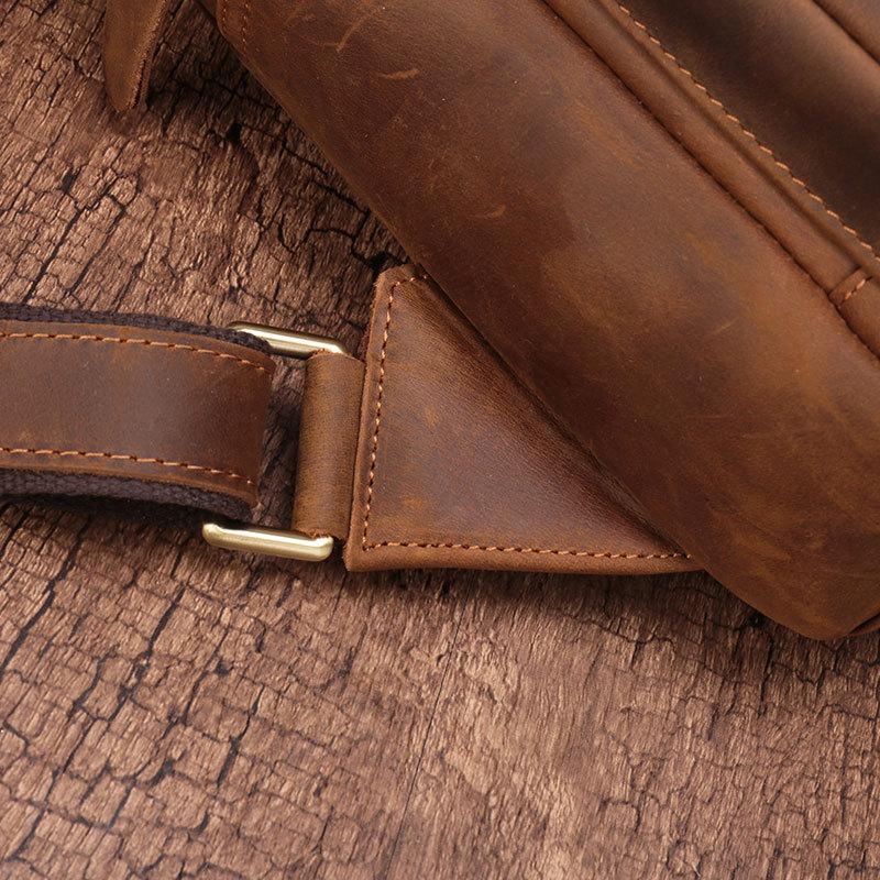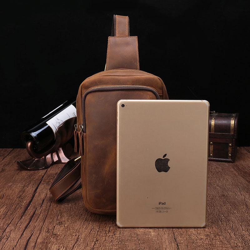 Design: Vintage Brown Leather Men's Sling Bags Chest Bag One Shoulder Backpack For Men