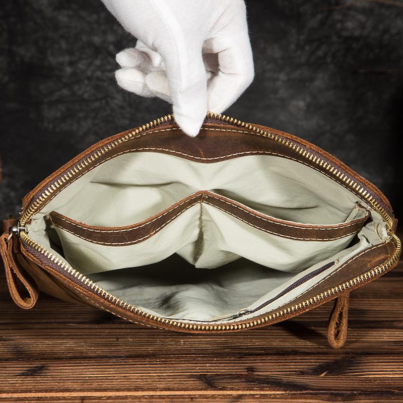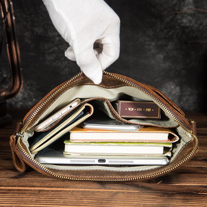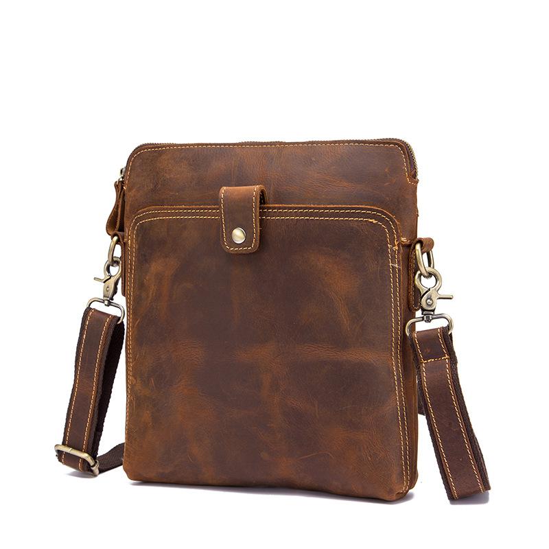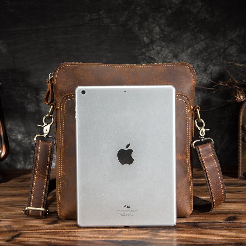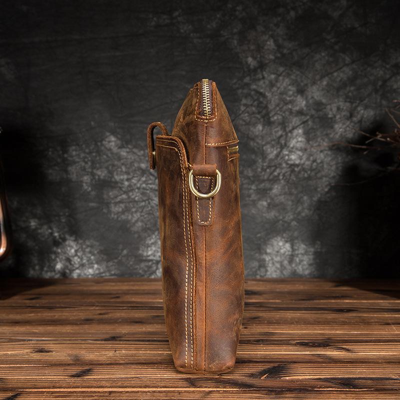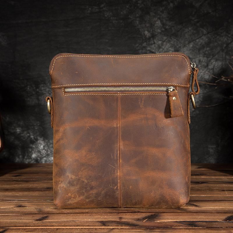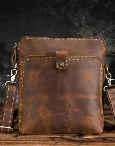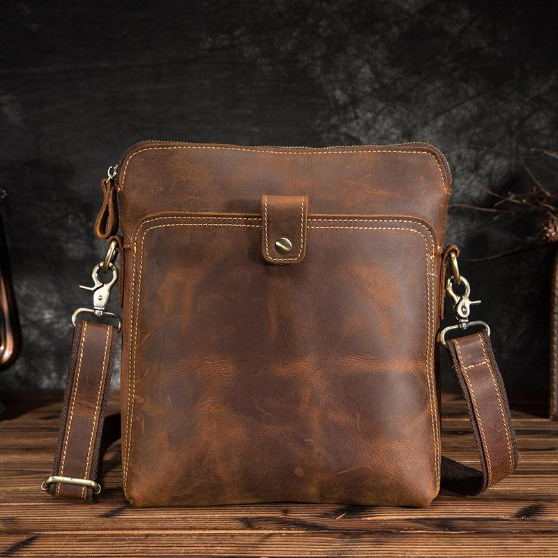 Style: Vintage Brown Leather Men's Small Vertical Messenger Bag Side Bag Courier Bag For Men
