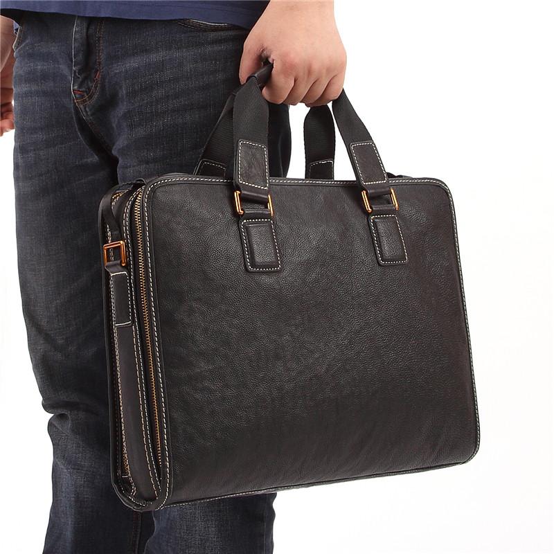 Design: Fashion Black Leather Men's Briefcase Professional Briefcase 15‘’ Black Laptop Briefcase For Men