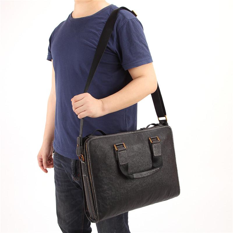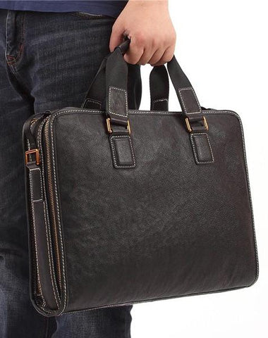 Style: Fashion Black Leather Men's Briefcase Professional Briefcase 15‘’ Black Laptop Briefcase For Men