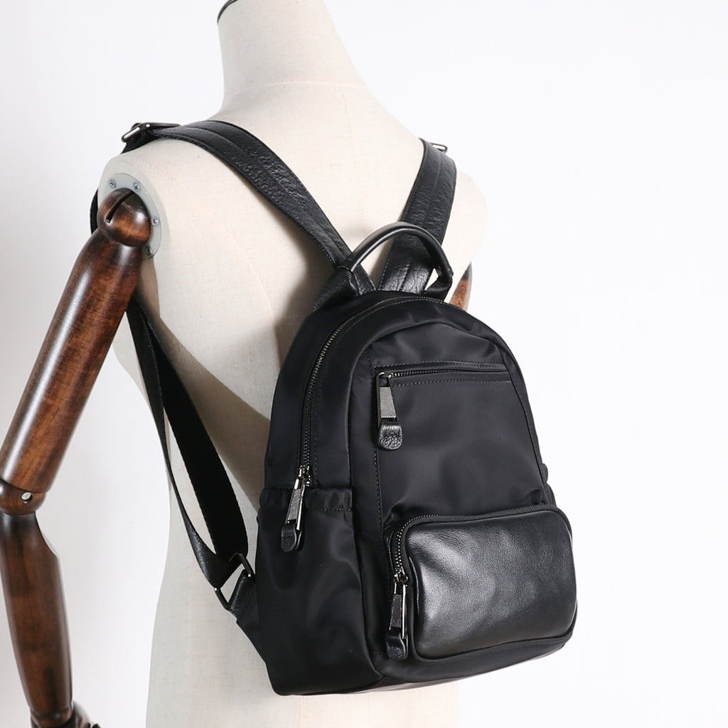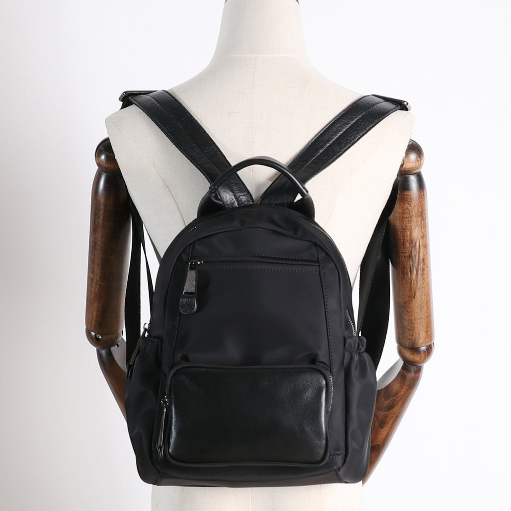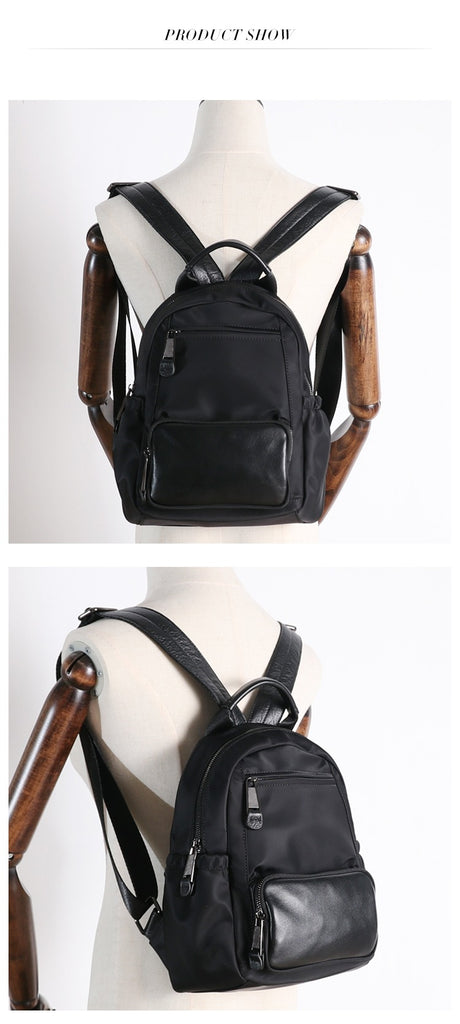 Style: Nylon Backpacks Womens School Backpack Purse Black Nylon Leather Travel Rucksack for Ladies