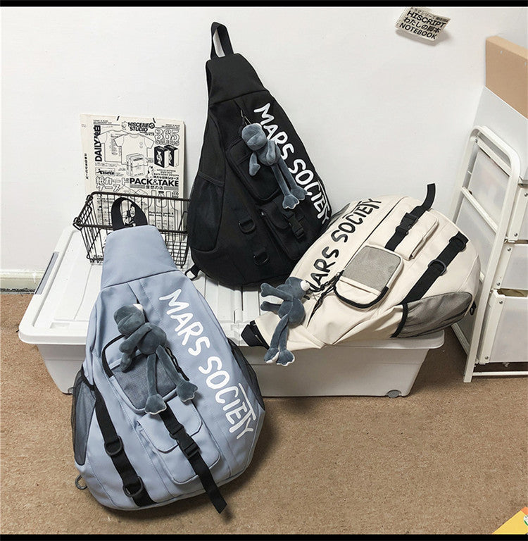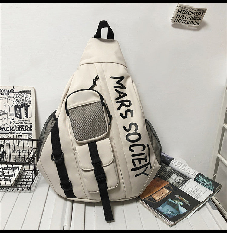 Crafted from high-quality nylon, this sling bag boasts a waterproof construction, ensuring your items remain dry and protected in all weather conditions. The bag is available in three classic colors: white, black, and gray. These neutral shades offer a timeless appeal, making the bag a versatile addition to any wardrobe and suitable for various occasions.