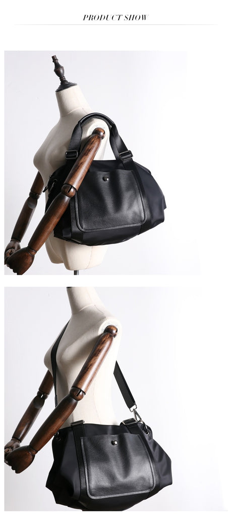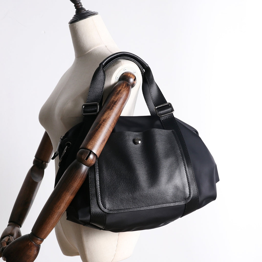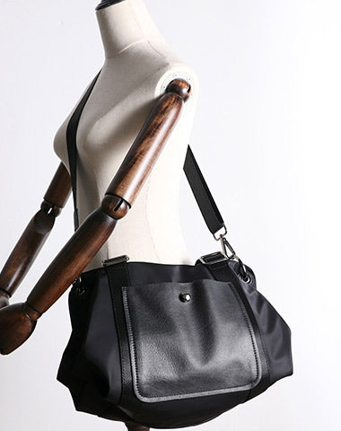 Style: Nylon Leather Handbag Purse Womens Black Nylon Shoulder Purse Nylon Work Crossbody Purse for Ladies