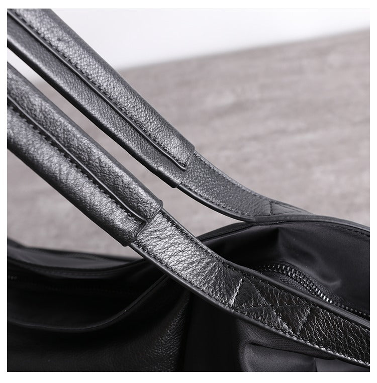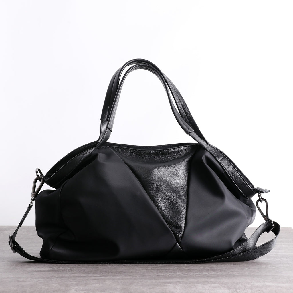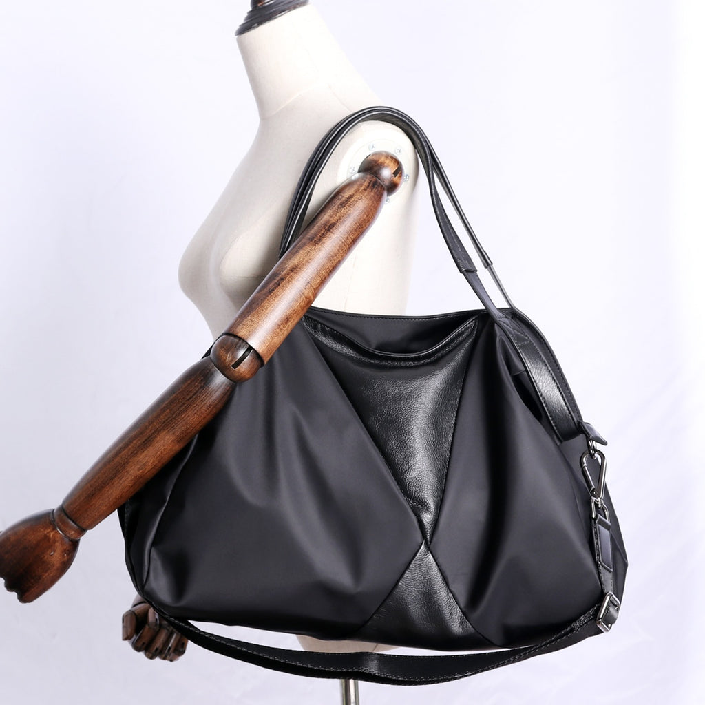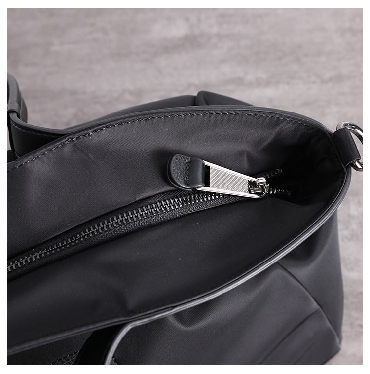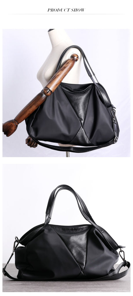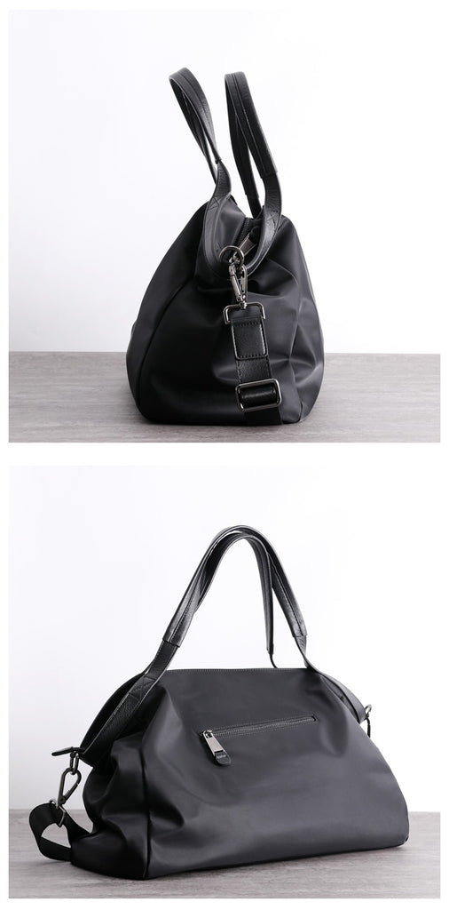 Design: Nylon Leather Travel Handbag Purse Womens Black Nylon Shoulder Bag Nylon Gym Purse for Ladies
