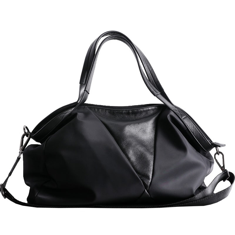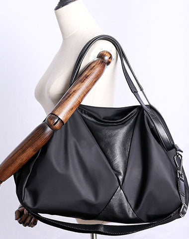 Style: Nylon Leather Travel Handbag Purse Womens Black Nylon Shoulder Bag Nylon Gym Purse for Ladies