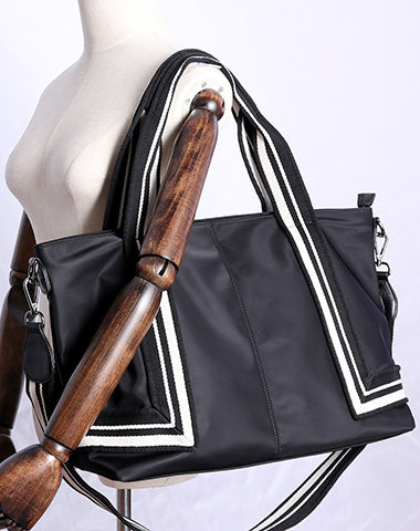 Style: Nylon Tote Handbag Purse Womens Black Nylon Travel Shoulder Bag Nylon Tote Purse for Ladies