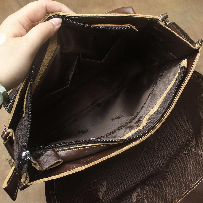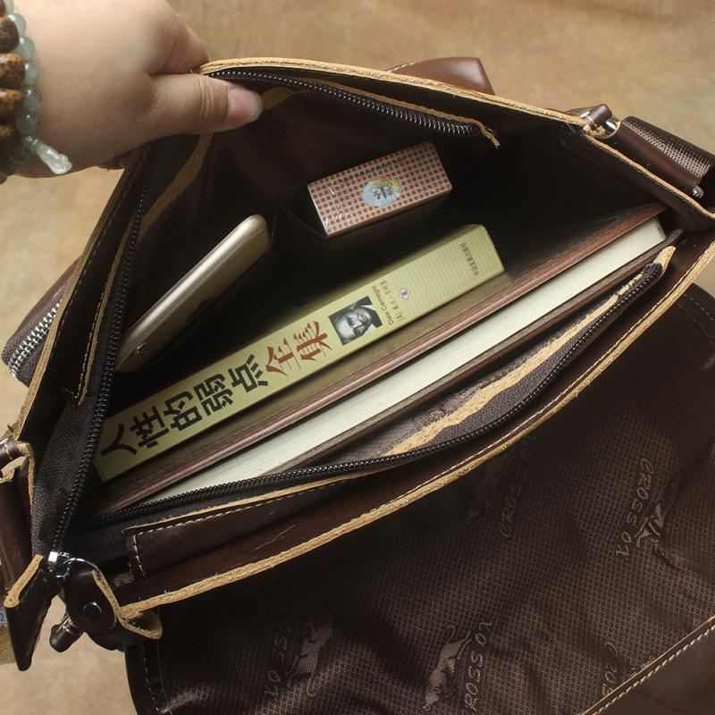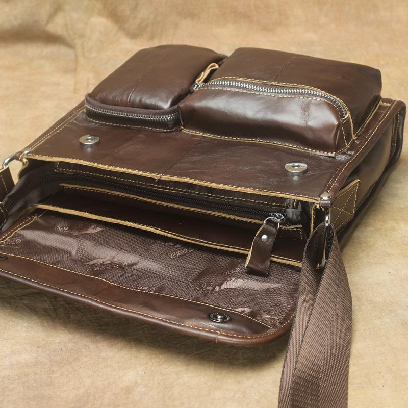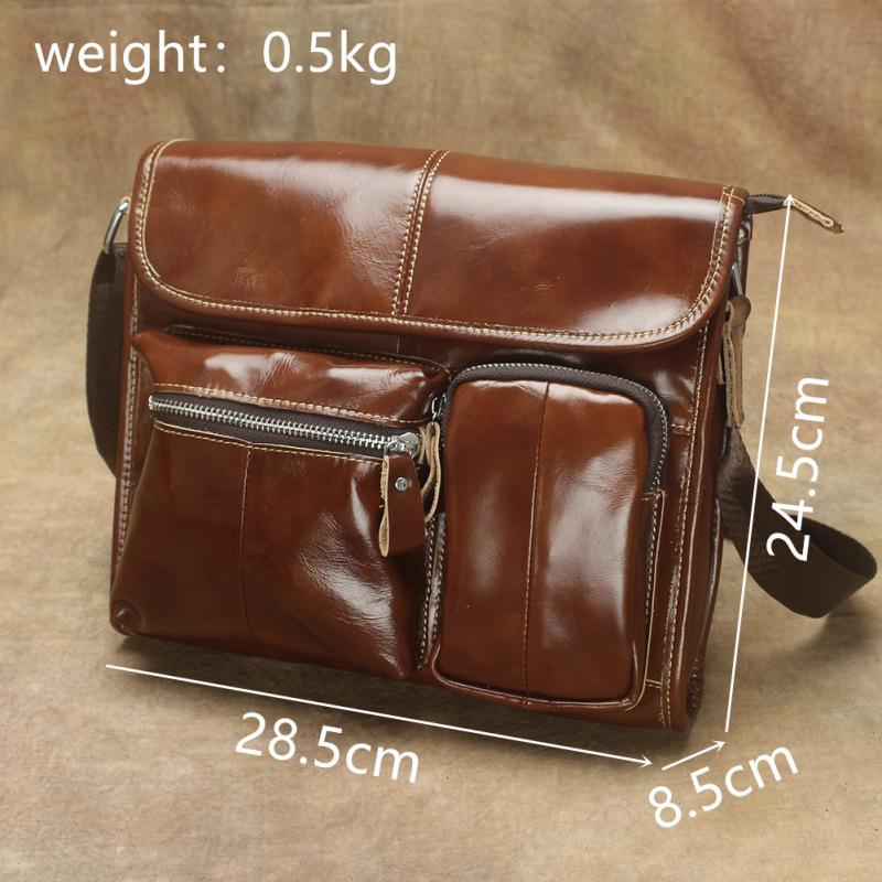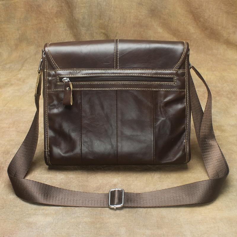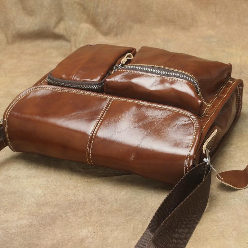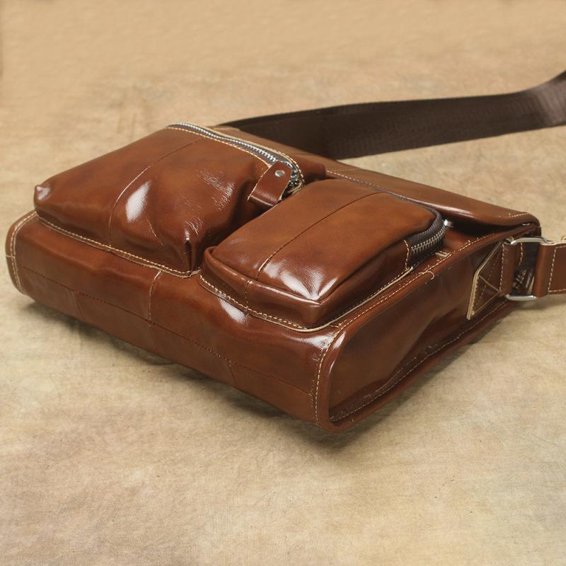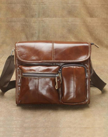 Design: Oil Waxed Brown Leather Men's Small Messenger Bag Coffee Small Side Bag For MenOverview: