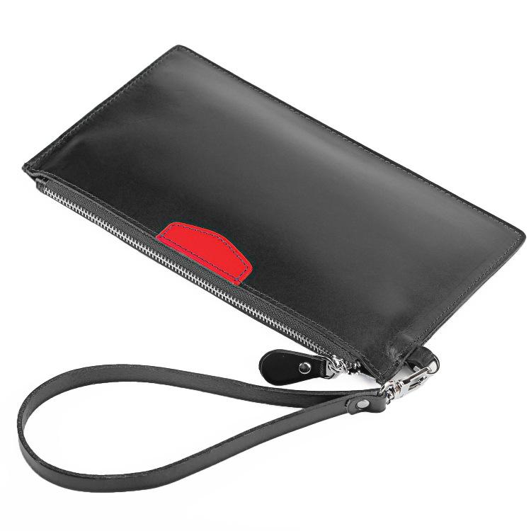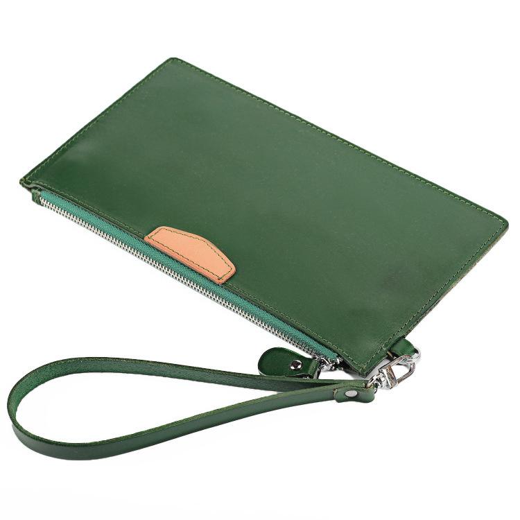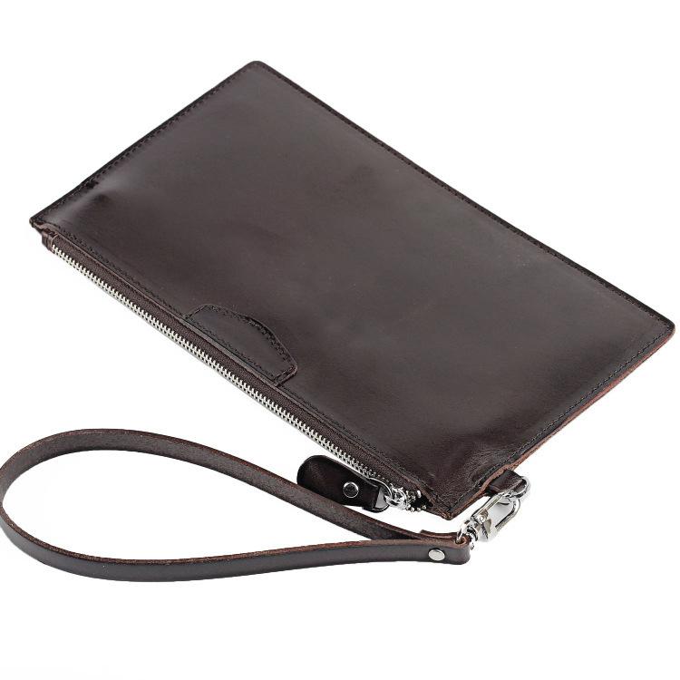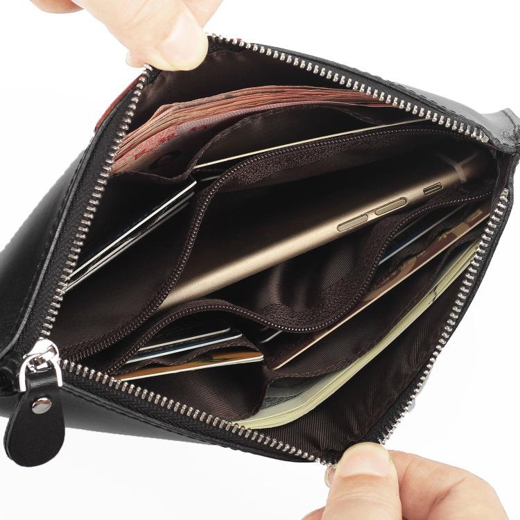 Style: Oiled Leather Men's Yellow Ultra Thin Long Wallet Zipper Multiple Purse Wallet Phone Bag For Men