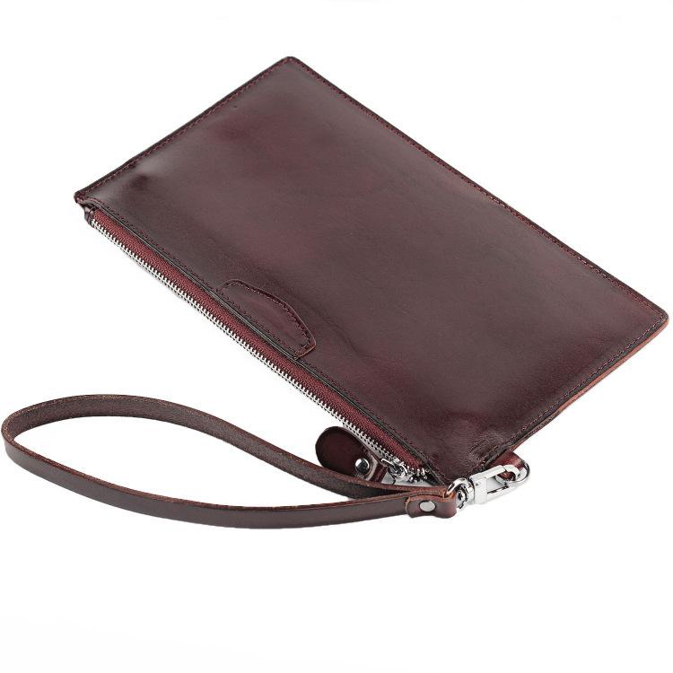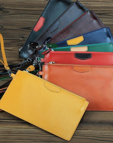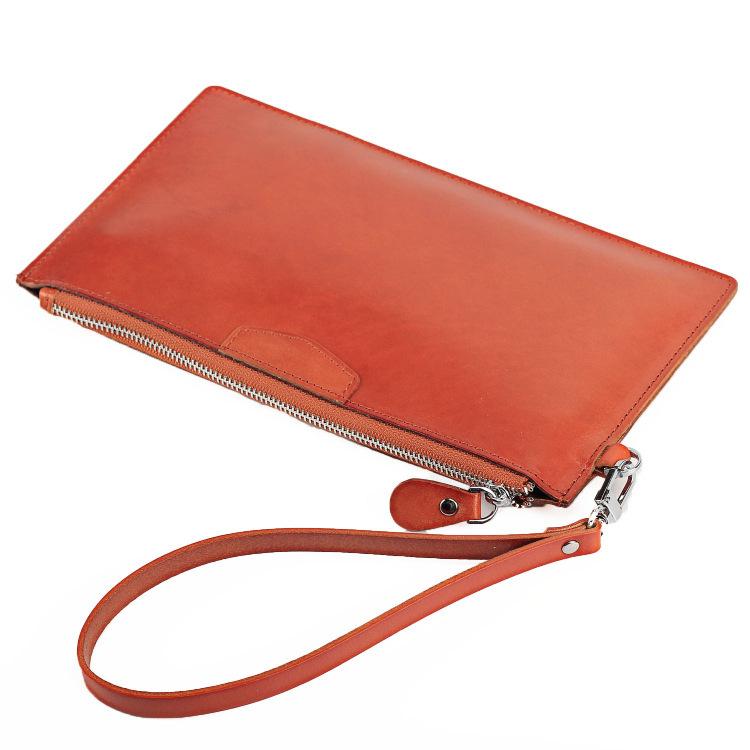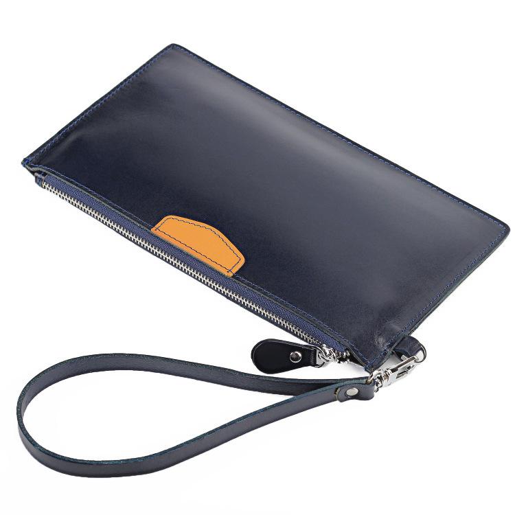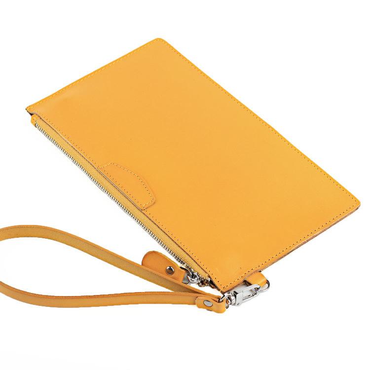 Design: Oiled Leather Men's Yellow Ultra Thin Long Wallet Zipper Multiple Purse Wallet Phone Bag For Men