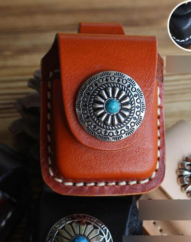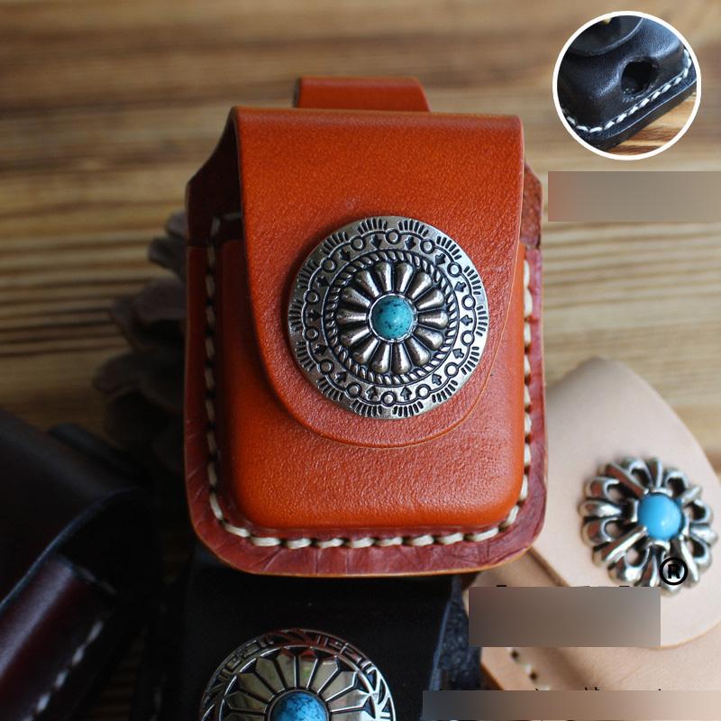 Design:?Handmade Mens Black Leather Zippo Lighter Case Belt Zippo Lighter Holder with Belt Clip