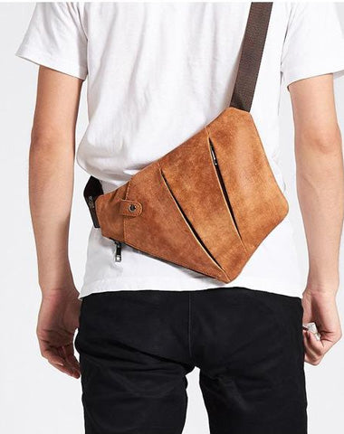 Design: Cool Leather Brown Men's Sling Bag Chest Bag Black Crossbody Backpack For Men
