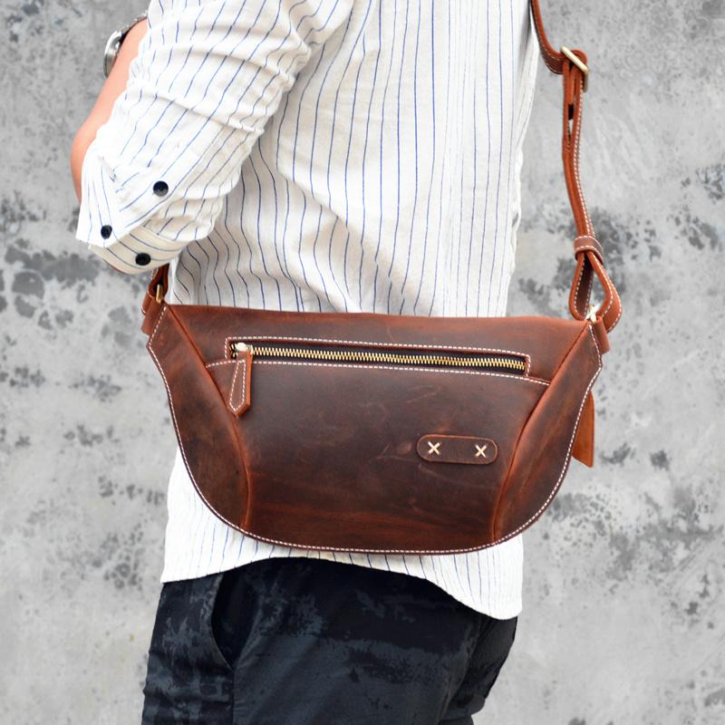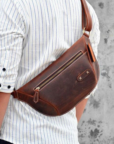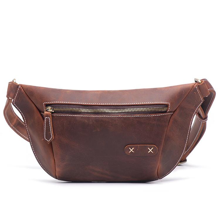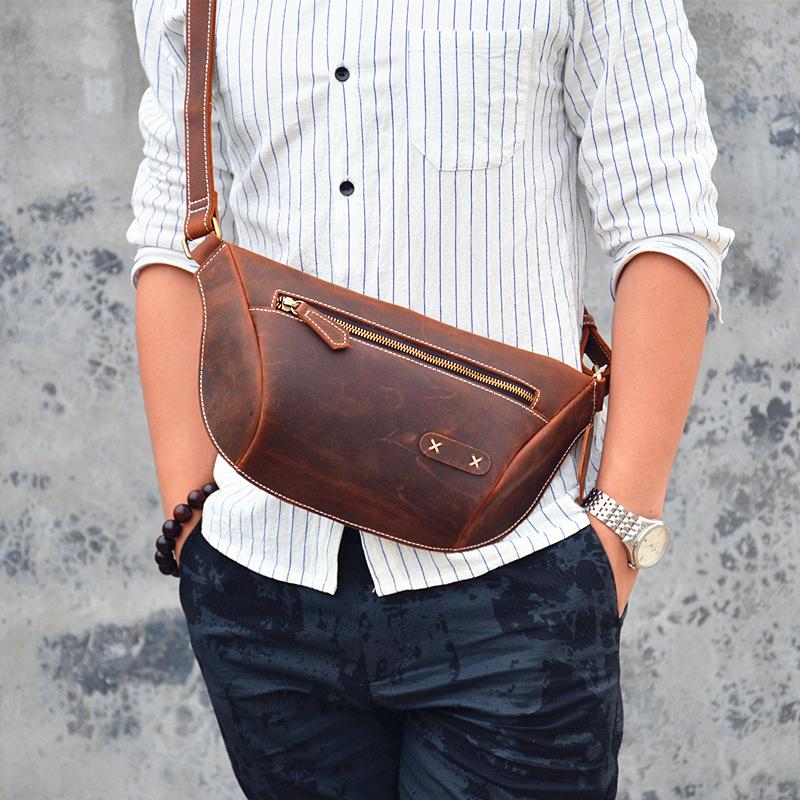 Style: Vintage Brown Leather Men's Fanny Pack Hip Pack Waist Bag For Men