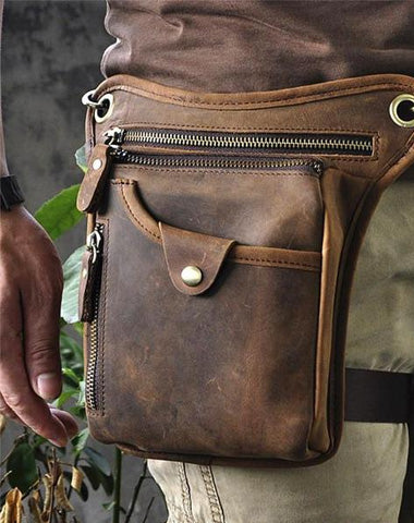 Style: Vintage Brown Leather Men's Belt Pouch Drop Leg Bags Small Side Bag For Men